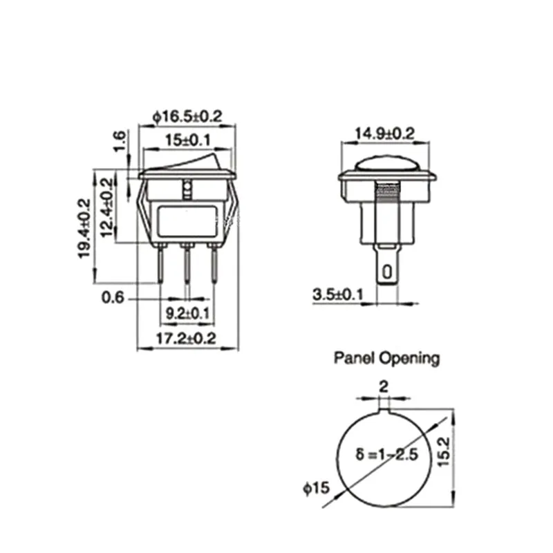 10 шт.лот KCD1 16 мм 2 контакта 250 В 3 А переключатель лодки SPST ...