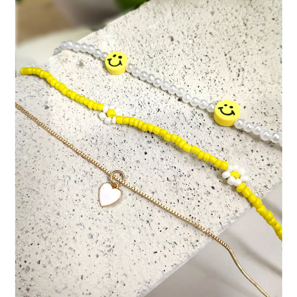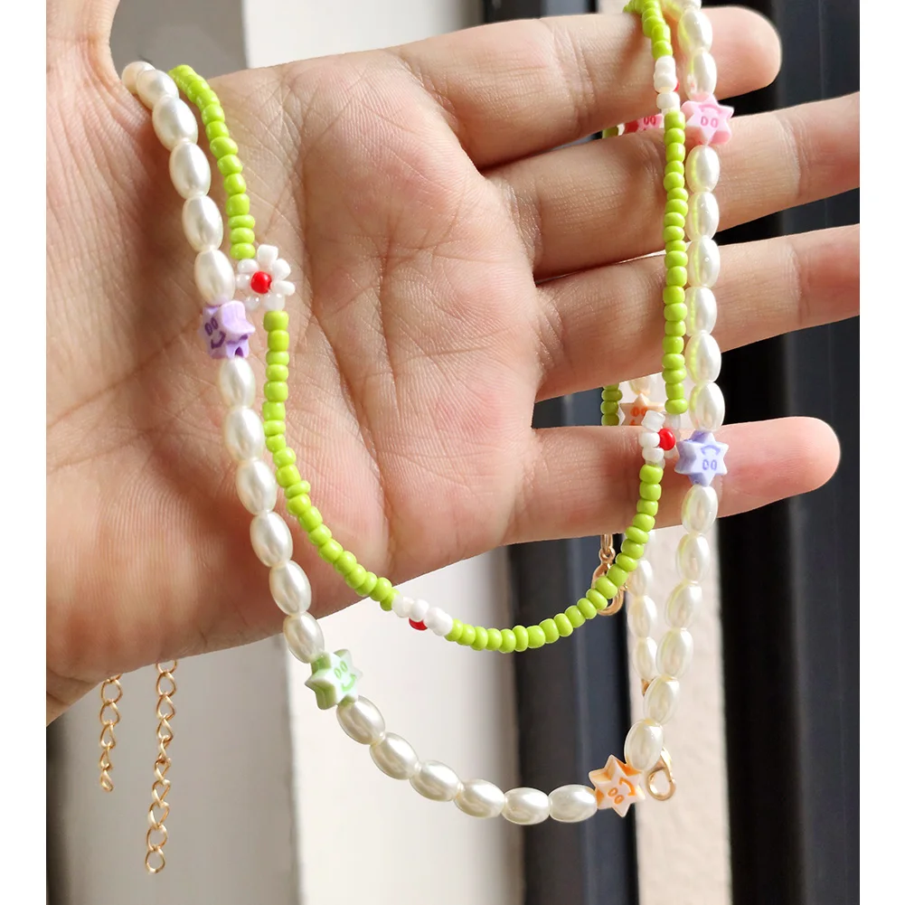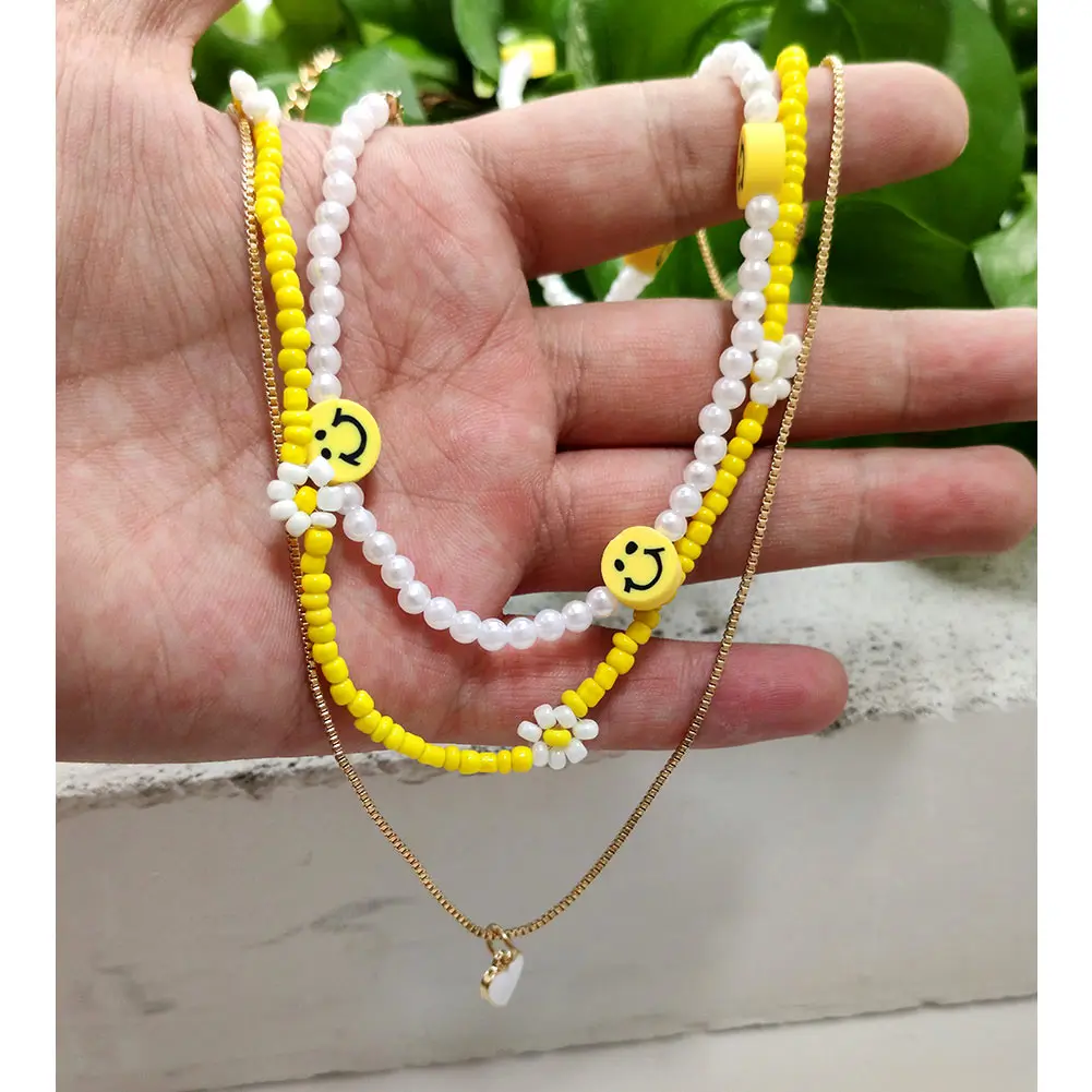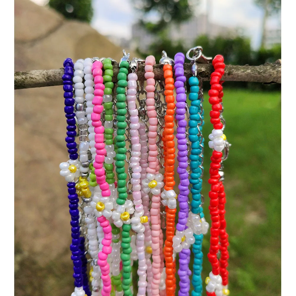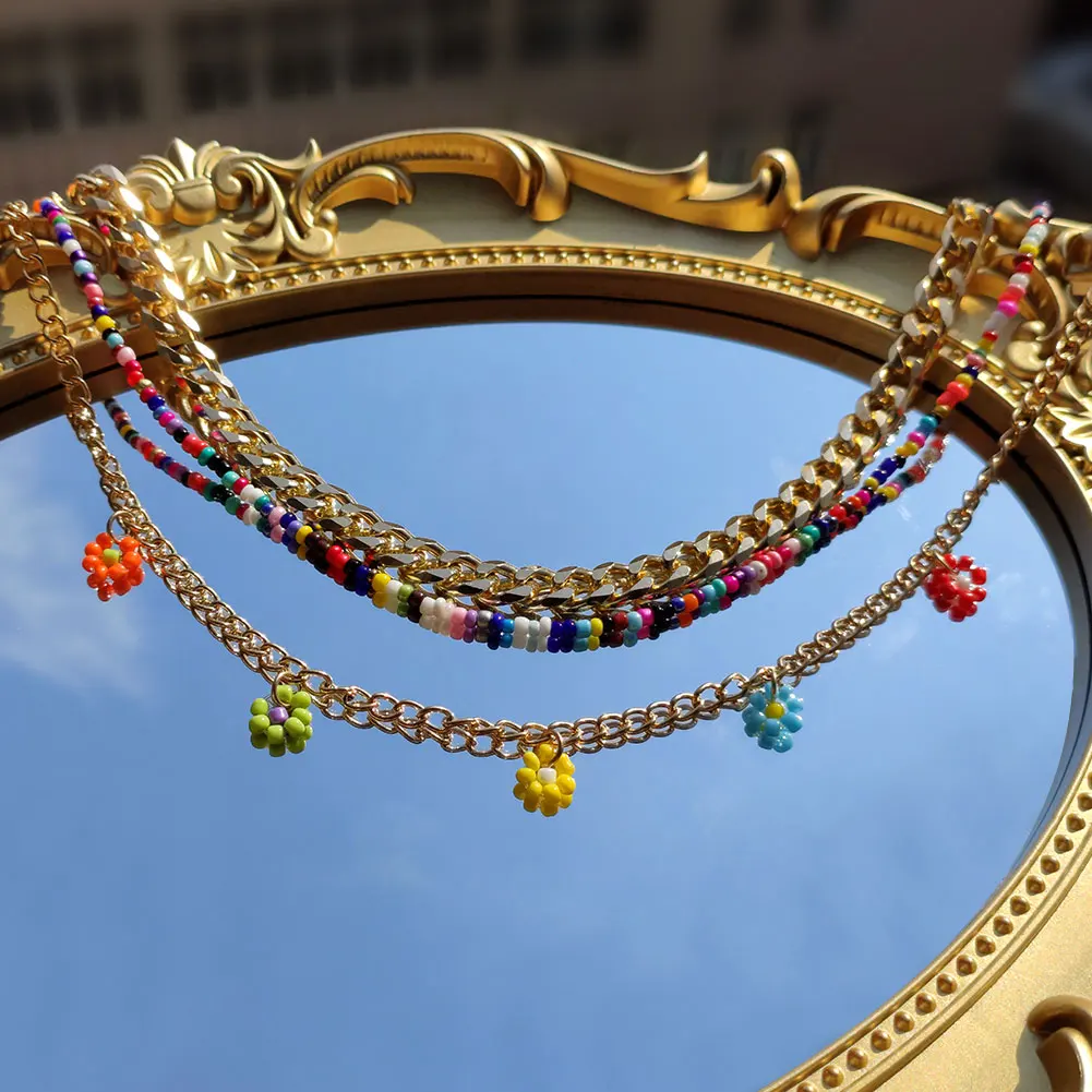 Чокер ручной работы в богемном стиле Женский, многослойное ожерелье с синими бусинами-маргаритками, подставкой и бусинами в форме сердца из глазурованного стекла, ювелирное изделие
