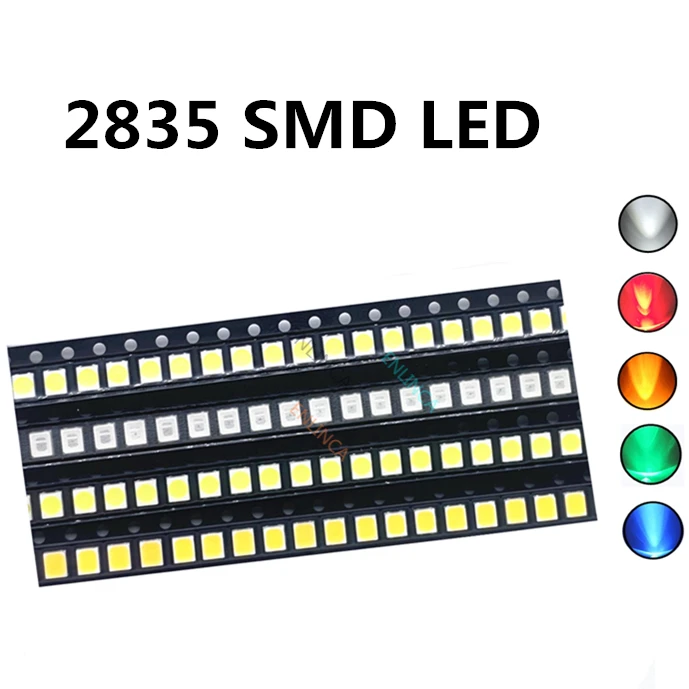 100 шт. 2835 SMD светодиодные излучающие диоды, чип лампы светильник вые бусины, Теплый Холодный белый красный зеленый синий желтый цвет Micro DIY PCB Circuit