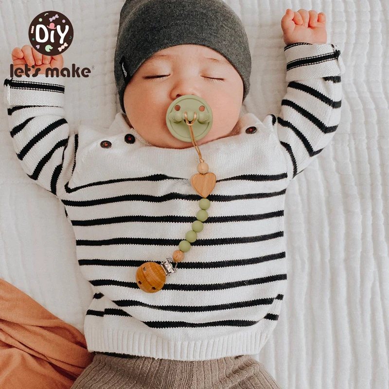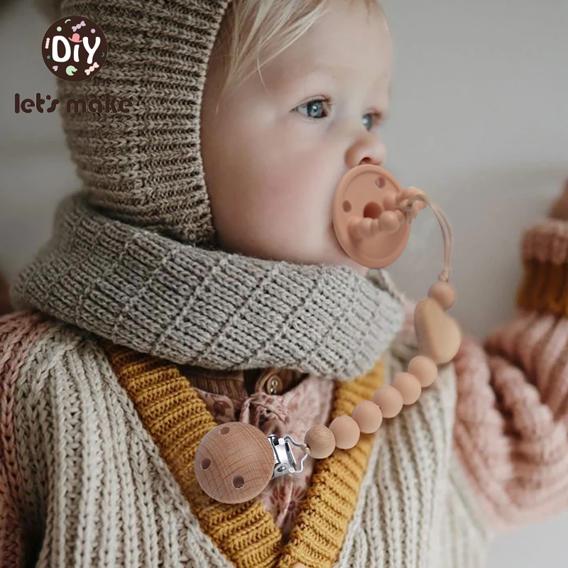 Let's Make 1 набор силиконовых детских деревянных пустышек с сердечком, пустышка с зажимом, безопасное Прорезывание Зубов, смайлик, пустышка, игрушки для новорожденных, подарок для душа
