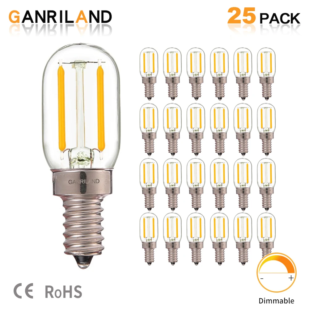 GANRILAND T20 радио холодильник лампа 1 Вт теплый 2200 к Ретро светодиодный светильник лампа 10 Вт эквивалент винтажная трубка Ночная лампочка E12 110 в E14 220 В диммируемая