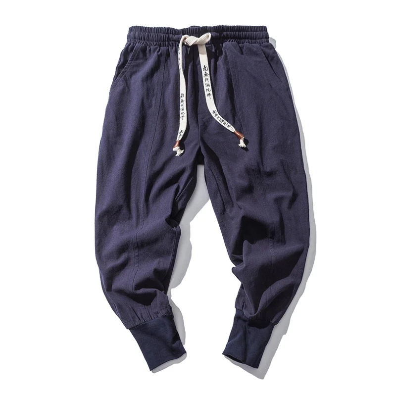 Шаровары мужские из хлопка и льна, однотонные джоггеры с эластичным поясом, уличная одежда, мешковатые брюки с заниженной мотней, повседневные штаны, 2022