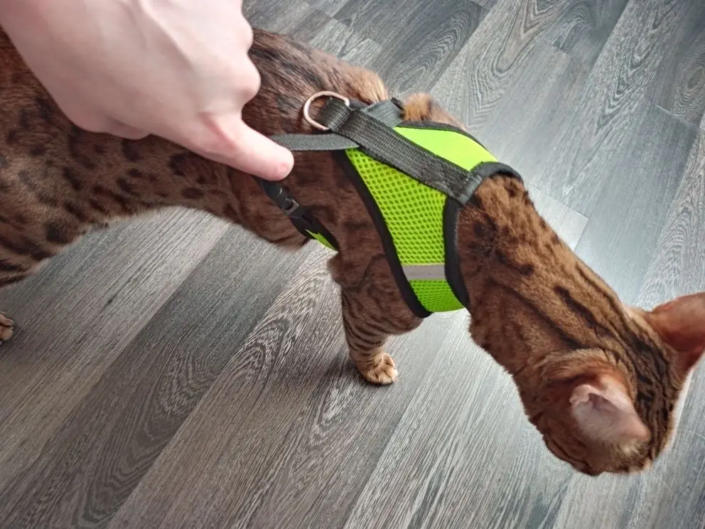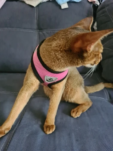 Хороший ремень безопасности. Струны немного прилипают, но их можно прижимать, и все будет хорошо. Я заказал котенка в течение 6 месяцев, вес 2,800 кг. Он идеально сидит, он даже вырастет. Длина поводка Оптимальна для ходьбы и быстрого захвата кота в случае опасности.