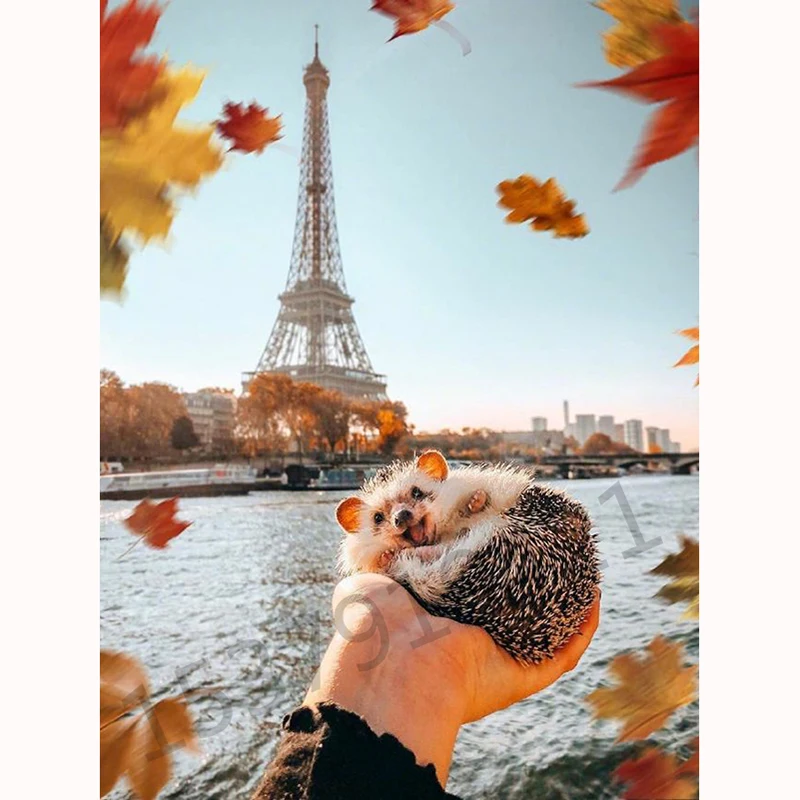 Алмазная 5D картина Ежик, осенняя искусственная вышивка с животными, Набор для вышивки крестиком с животными, мозаика, искусство, украшение для дома