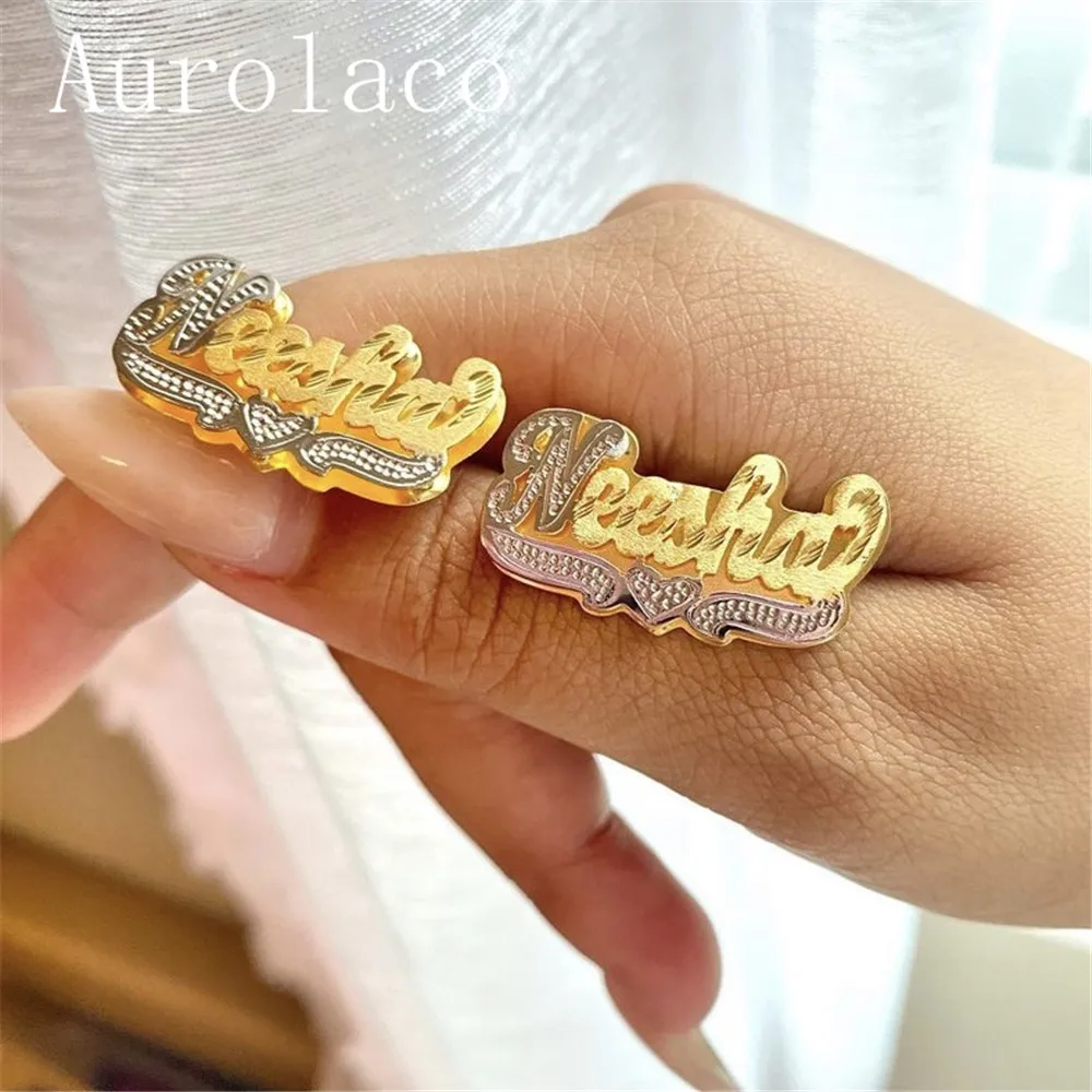 AurolaCo индивидуальные серьги-гвоздики 3D серьги с именной табличкой для женщин на заказ двухцветные серьги с именем ювелирные изделия в подарок