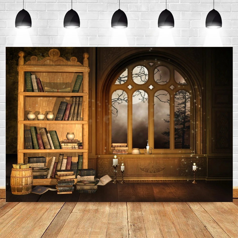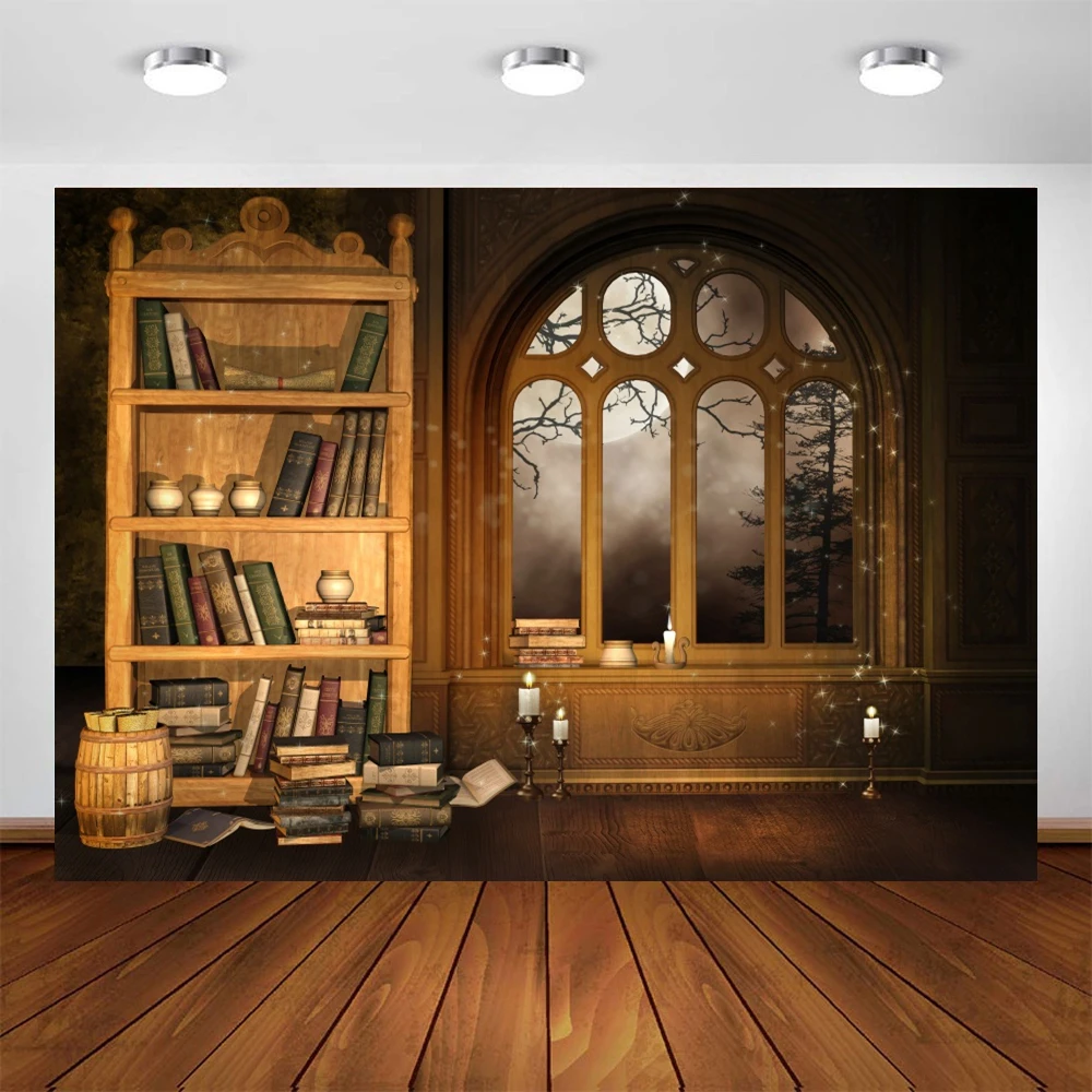 Фон Yeele для Хэллоуина с изображением ночных книг книжной полки окна фон для новорожденвечерние фотография для фотостудии Фотофон