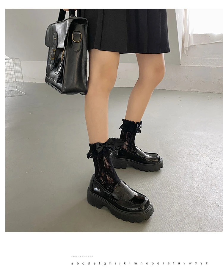 Туфли-оксфорды женские на платформе, каблук, Лолита, милые школьные...