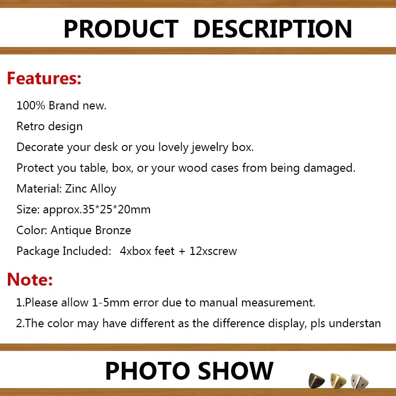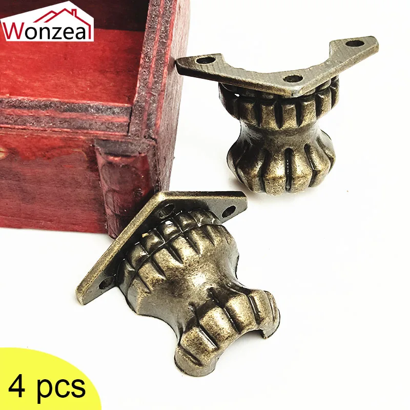4 шт. винтажная Подарочная коробка для ювелирных изделий Деревянный чехол с декоративными ножками металлический Угловой протектор античный кронштейн + винты