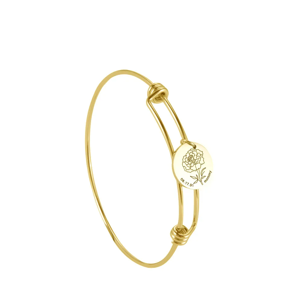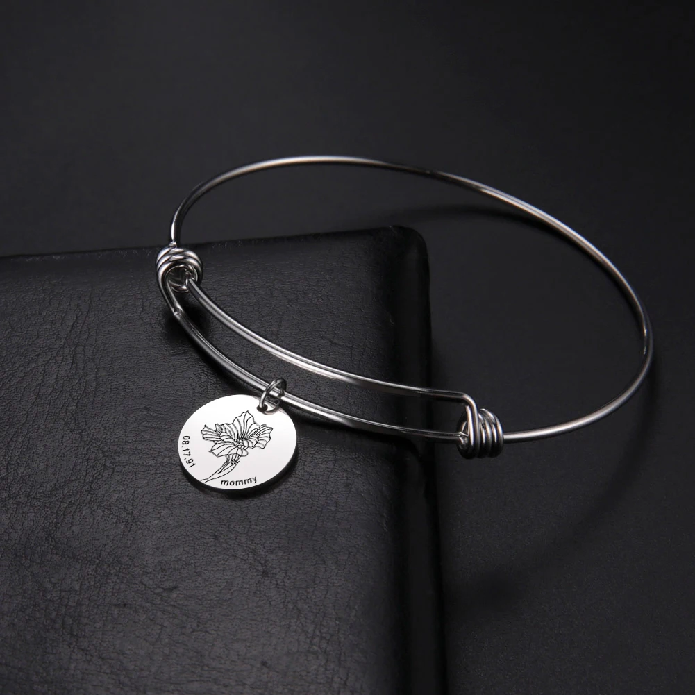 Браслет с цветком рождения, браслет с персонализированной гравировкой имени даты года, семейного подарка из нержавеющей стали на заказ для мужчин и женщин, ювелирные изделия