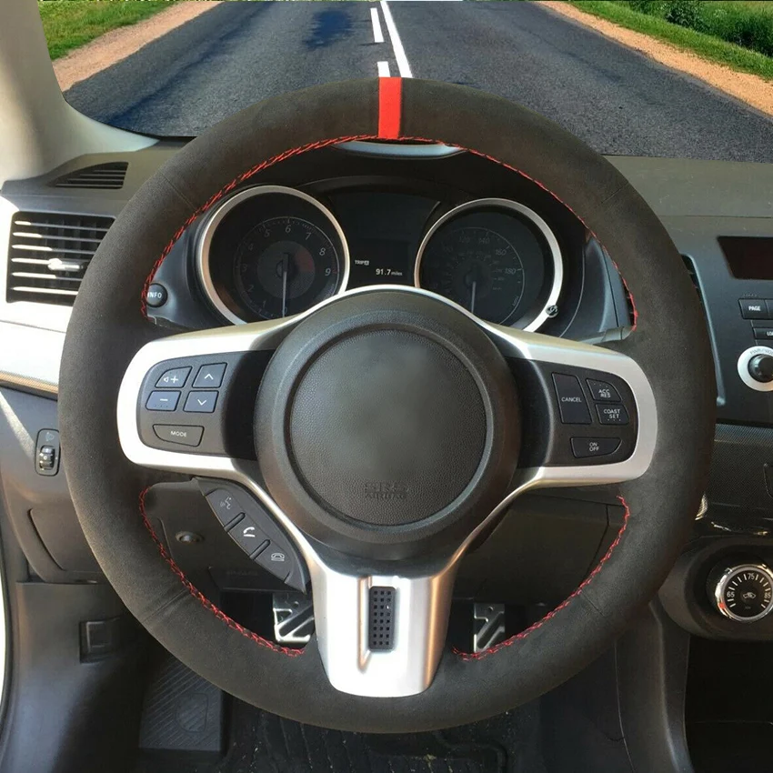 Сшитые вручную черные замшевые красные маркеры, не скользят, для Mitsubishi Lancer 10 EVO Evolution