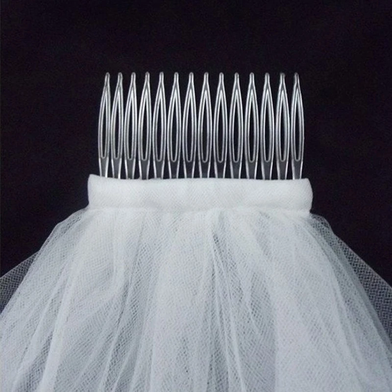 Простые короткие тюлевые Свадебные вуали двухслойные с гребнем деше...