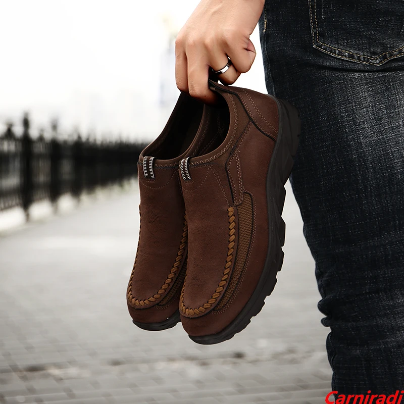 Повседневная обувь без шнуровки в британском стиле; Большие размеры; Мужские осенние кожаные лоферы; Мокасины; Мужская легкая Нескользящая прогулочная обувь