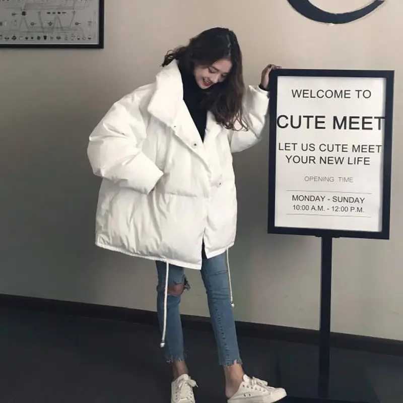 Однотонная хлопковая куртка, женская одежда, зима 2021, корейская мода, ретро, Повседневная свободная, в стиле преппи, короткая хлопковая куртка, тренд