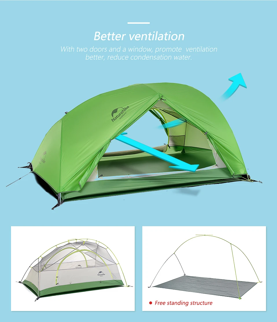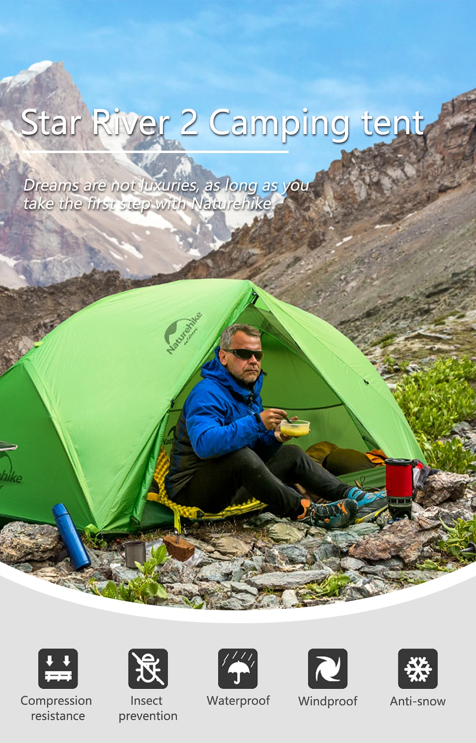 Палатка Naturehike туристическая Ультралегкая из силикона 20D, на 2 человек, Всесезонная, для пешего туризма и путешествий, серия Star River, с бесплатным ковриком
