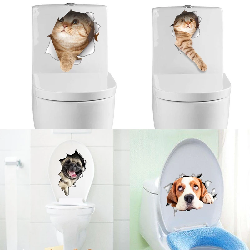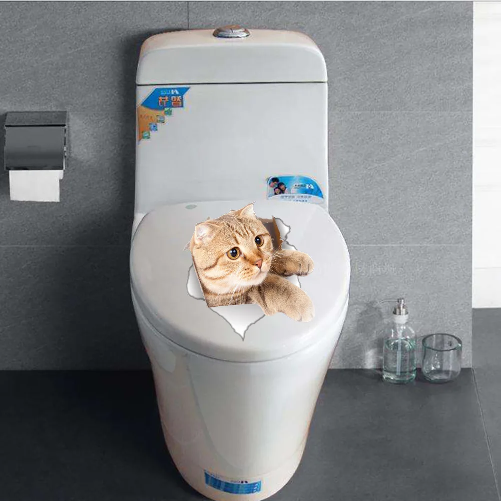 Кошка Собака Яркие 3D разбитые настенные стикеры ванная комната туалет Kicthen декоративные наклейки забавные животные Декор постер ПВХ роспись искусство