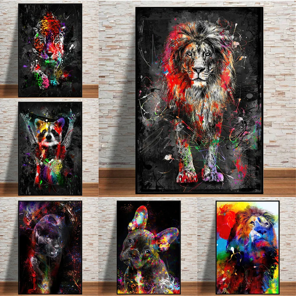 Абстрактный акварельный постер с изображением Льва и Тигра и животных, Картина на холсте с граффити, настенные картины для украшения гостиной
