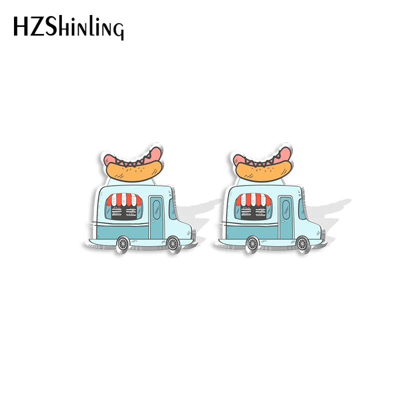 Акриловые серьги-гвоздики с изображением милых десертов, молочных к...