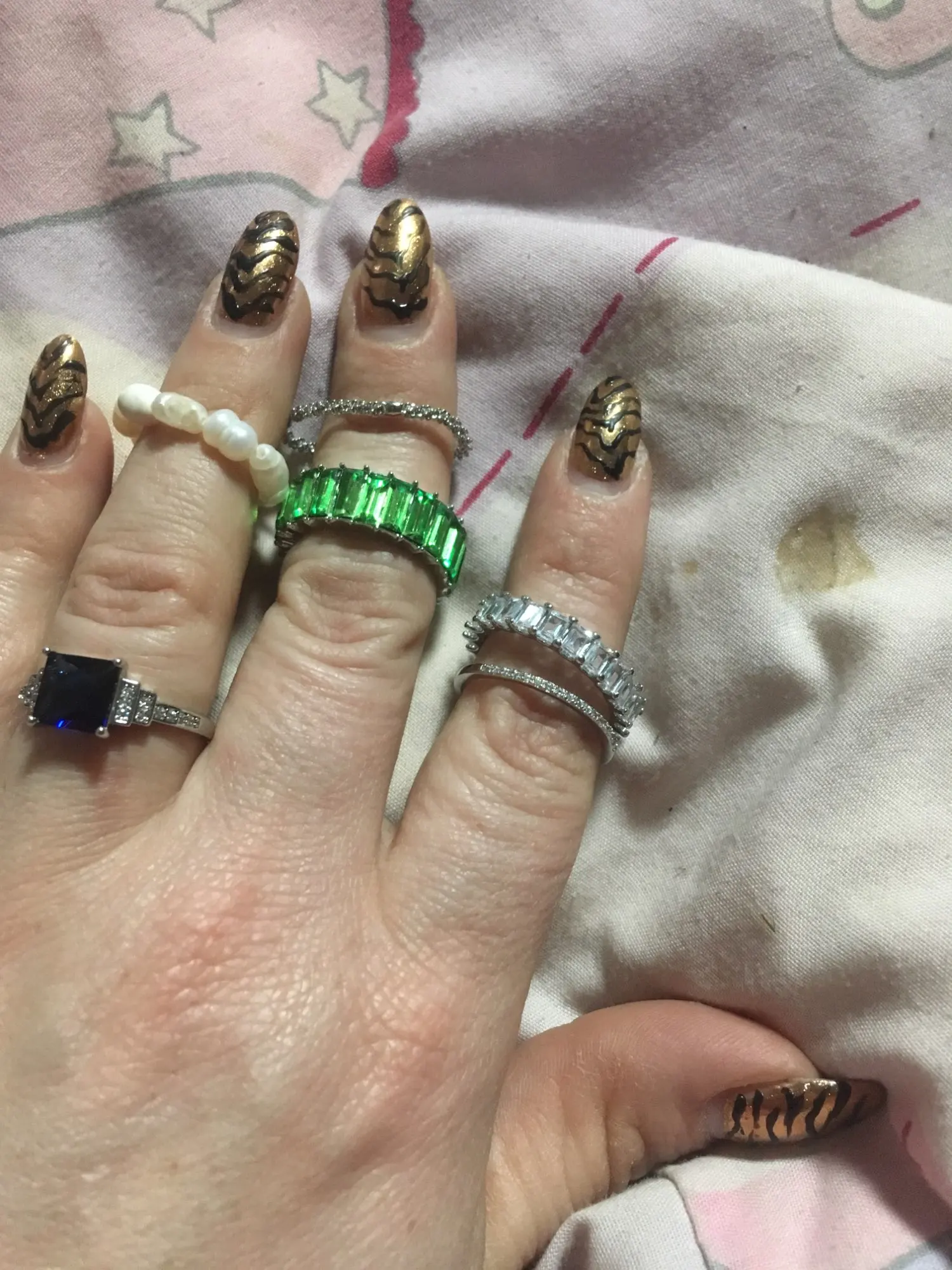 Люблю кольца. Размеры путают. У меня есть кольца Размером 7, и эти размеры 8 кажутся такими же, как у 7 или даже меньше. Один был немного сломан, но все нормально, другие были в порядке. Быстрая доставка около 16 дней.
