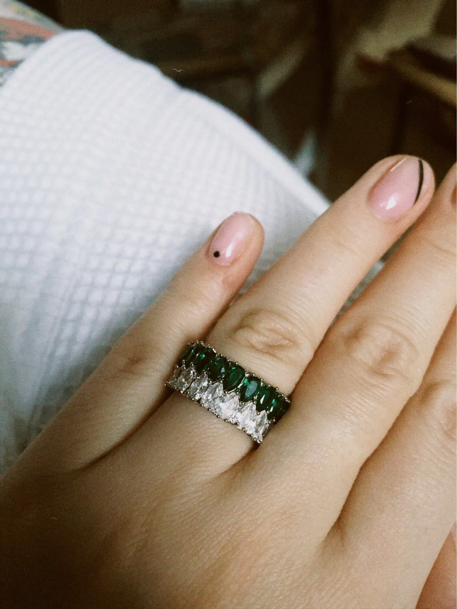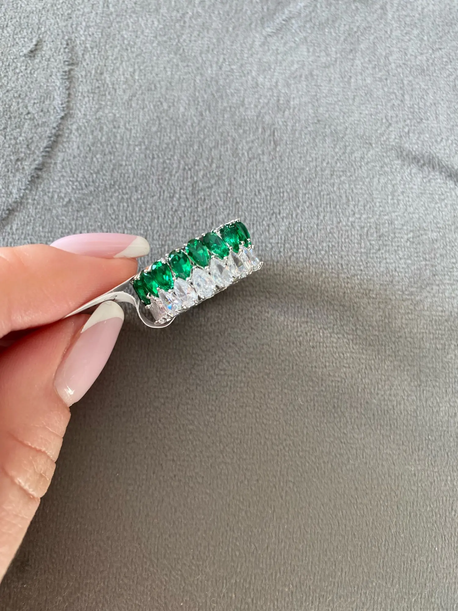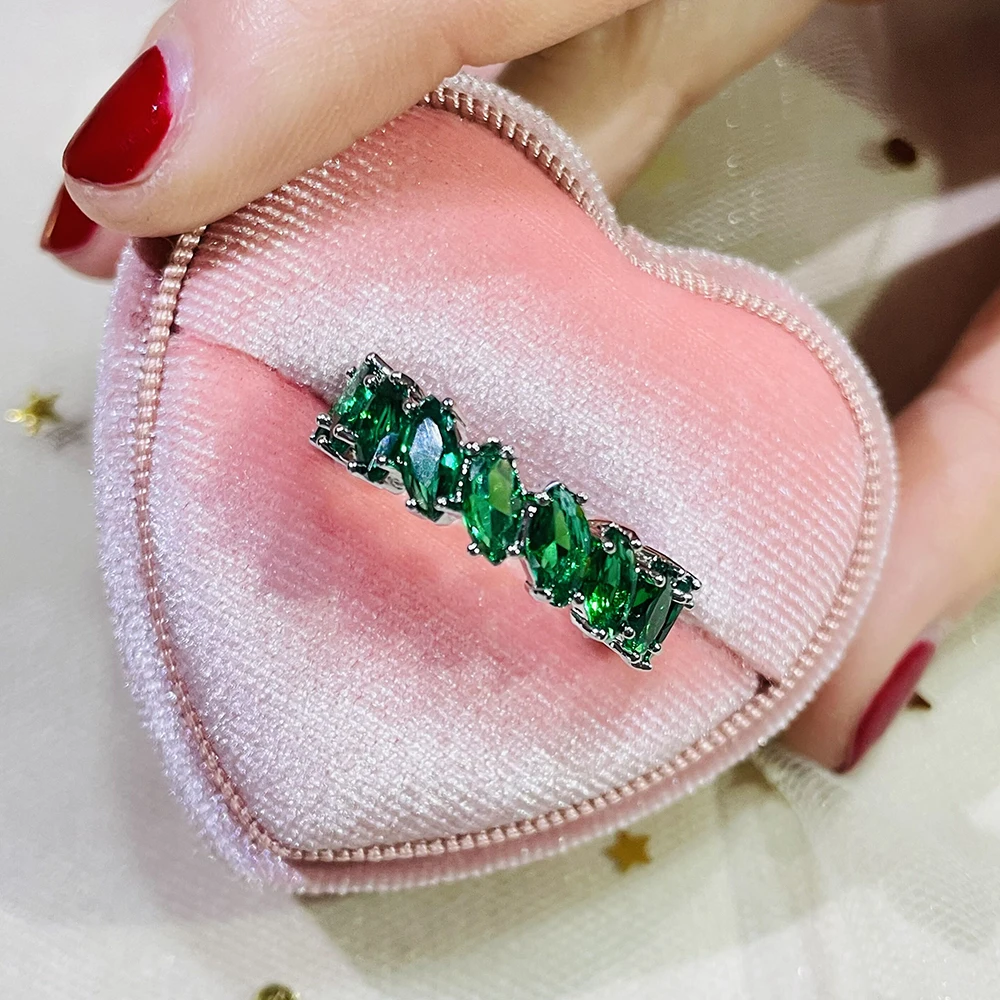 Женское кольцо из серебра 925 пробы, с зеленым кристаллом