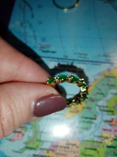 симпатичное кольцо, немного не удобное, колется, может это просто мне с не привычки, а так качество хорошее, циркончики блестят хорошо