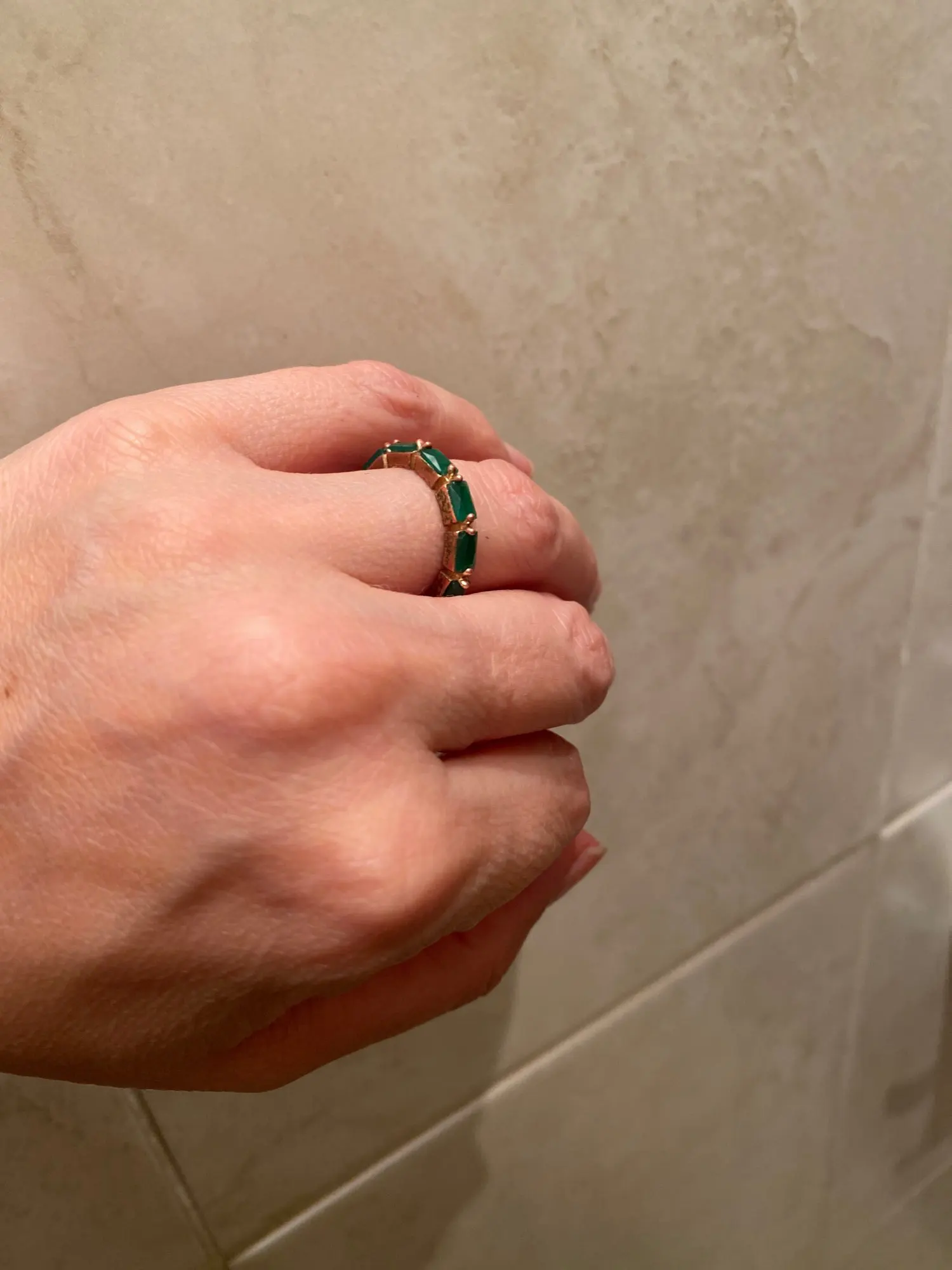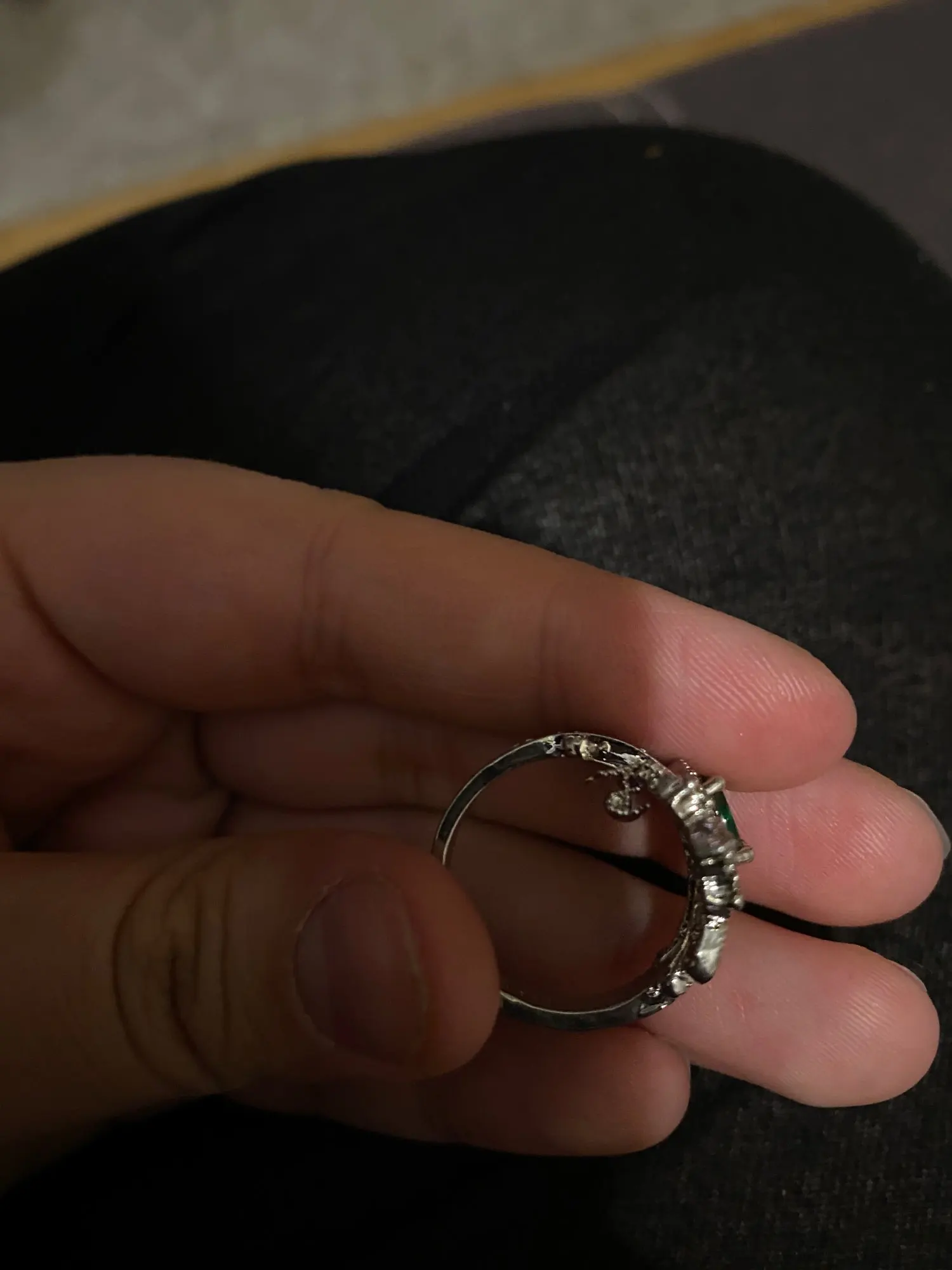 Драгоценный камень выглядит странным в некоторых ракурсах, которые, я думаю, скорее всего, как стеклянные осколки или что-то немного неудобно, но это красивое кольцо, последняя фотография-это то, что я думаю, что это выглядит как irl