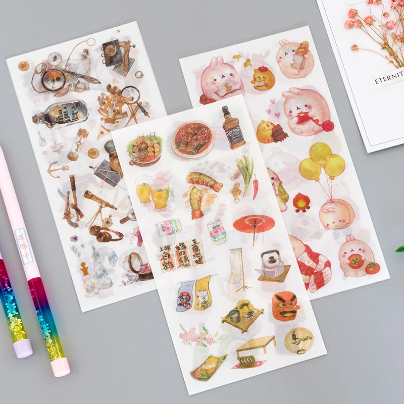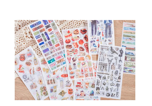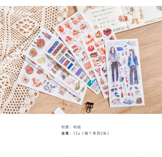 3 листов путешествия и пищевого Урожай Декоративных Васи наклейки этикетки Скрапбукинг Стик Дневник Канцтовары Альбом Наклейка эстетика