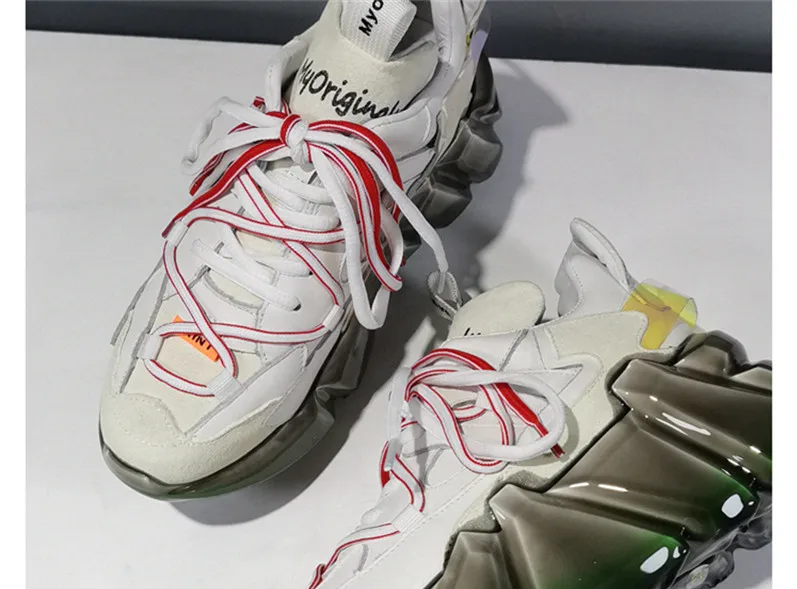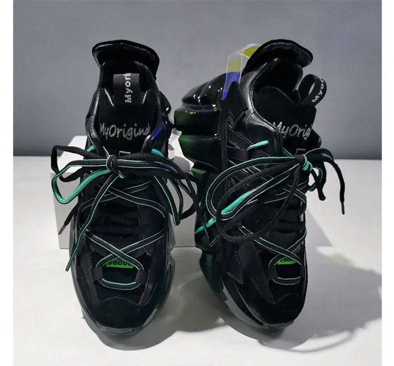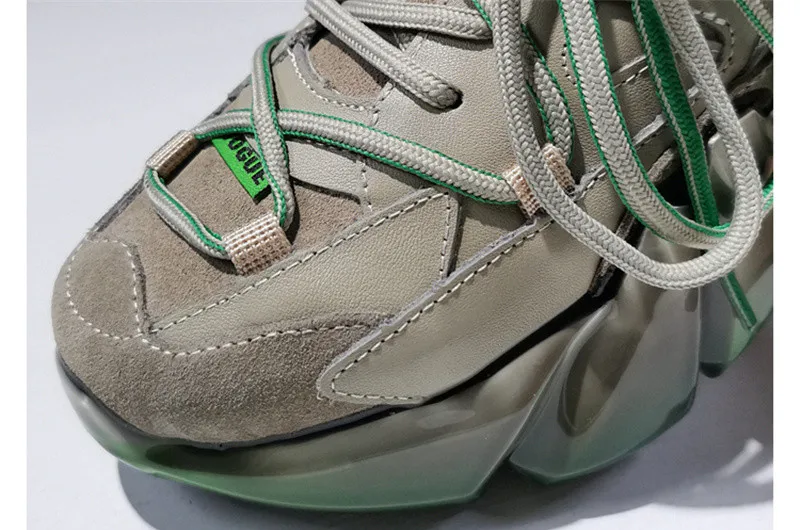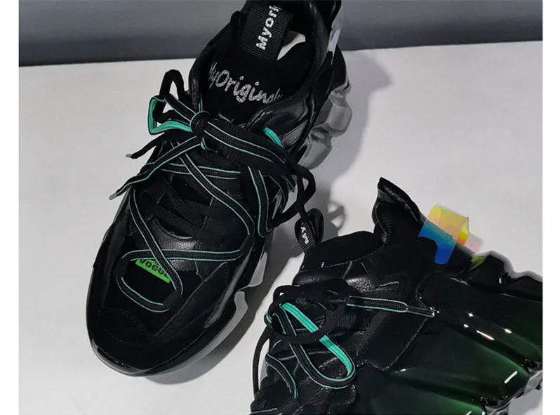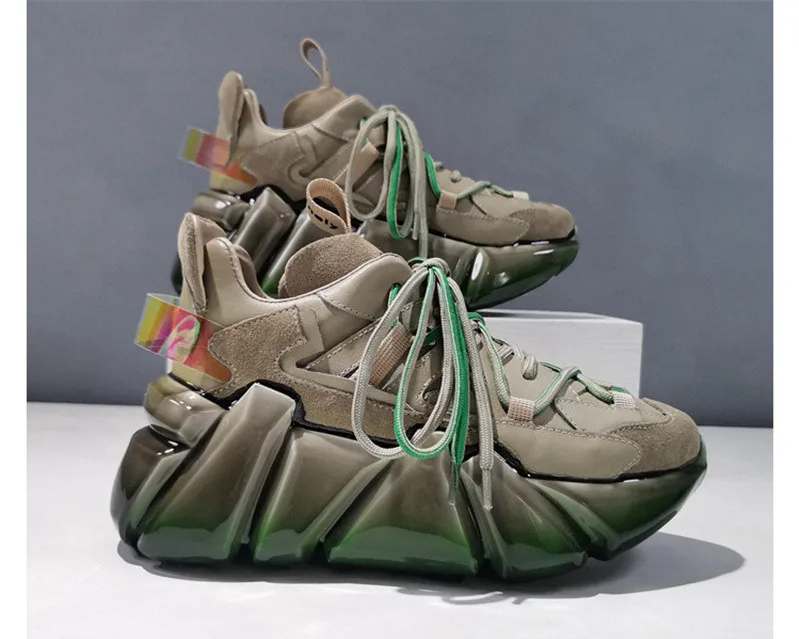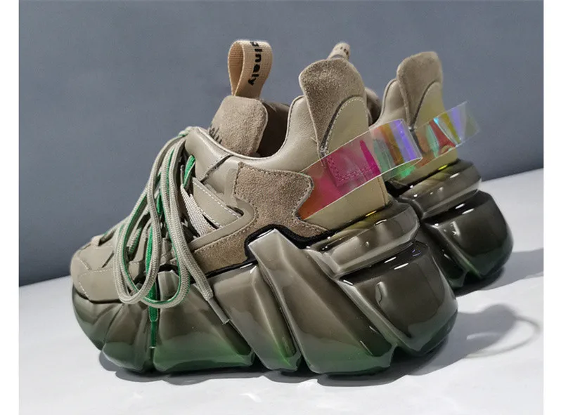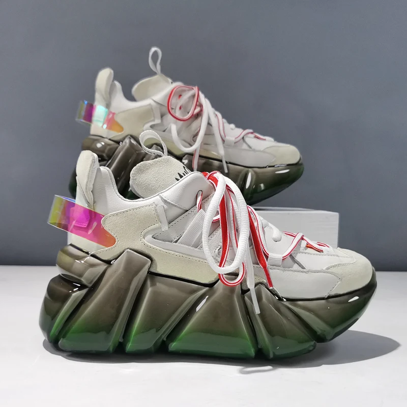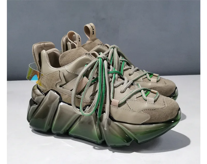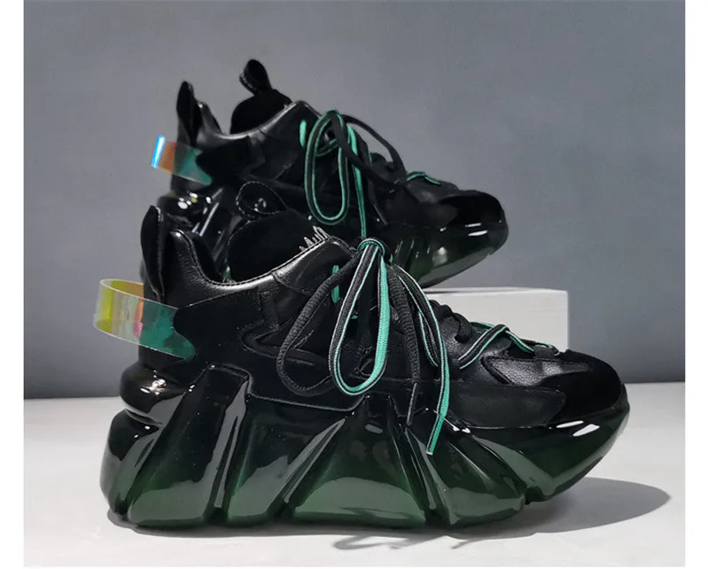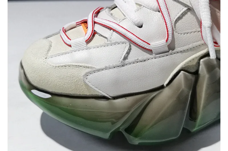Женские кроссовки на шнуровке, кожаные туфли на толстой подошве, с круглым носком, на платформе, с кристаллами, разноцветные