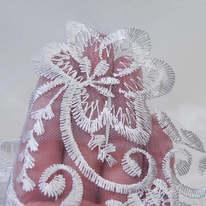Женская короткая свадебная фата, белая Однослойная кружевная Цветочная аппликация по краям, 150 см