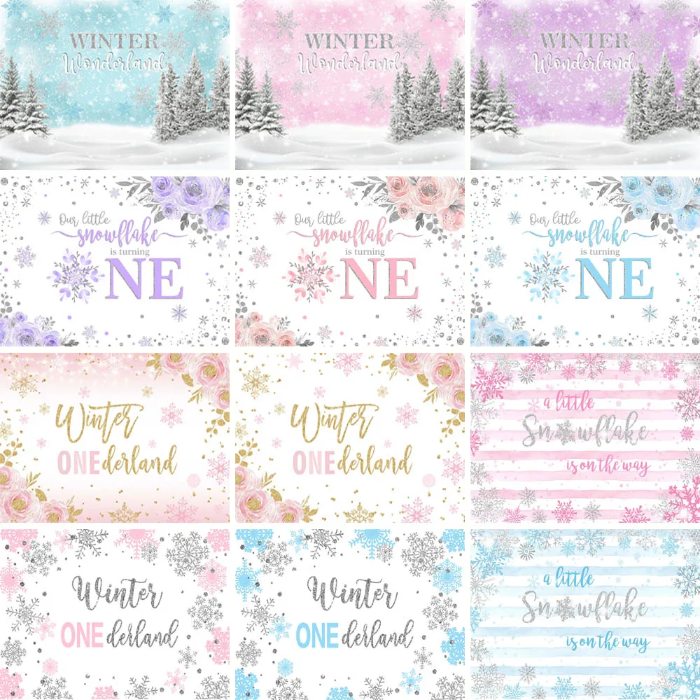 Зимний фон Onederland для новорожденных детей первый день рождества день рождения снежинка цветы фон розовый Серебряный декор для вечеринки фото