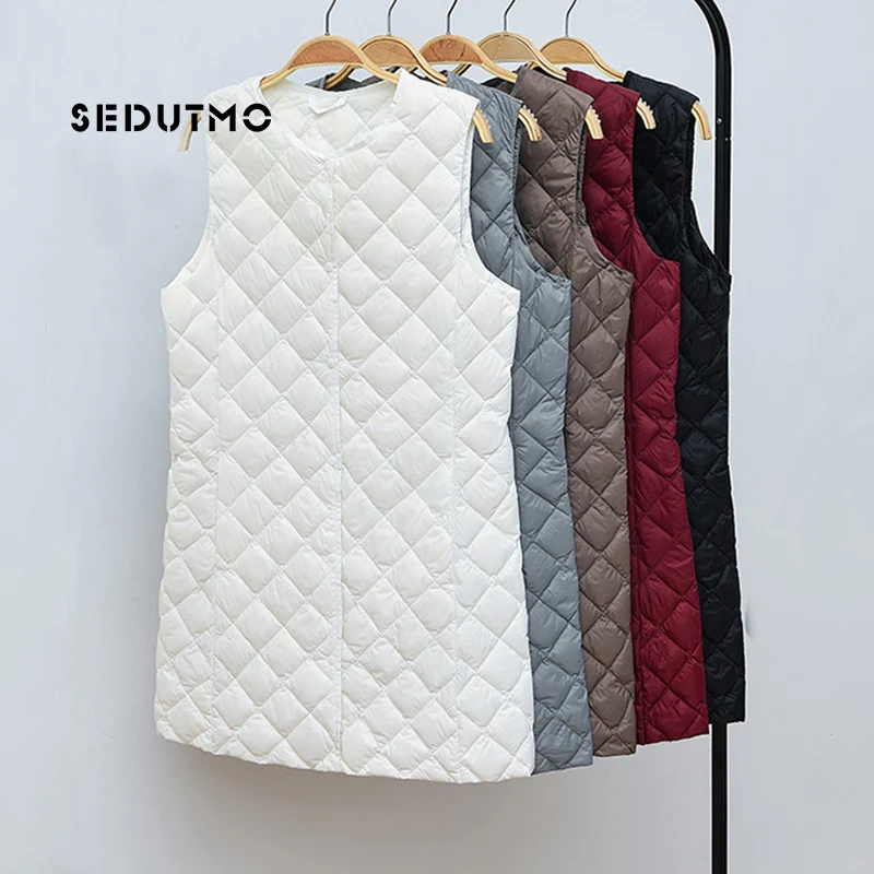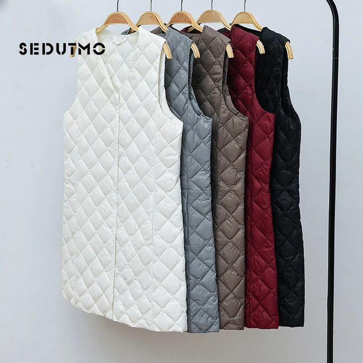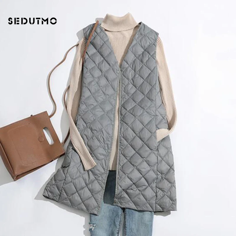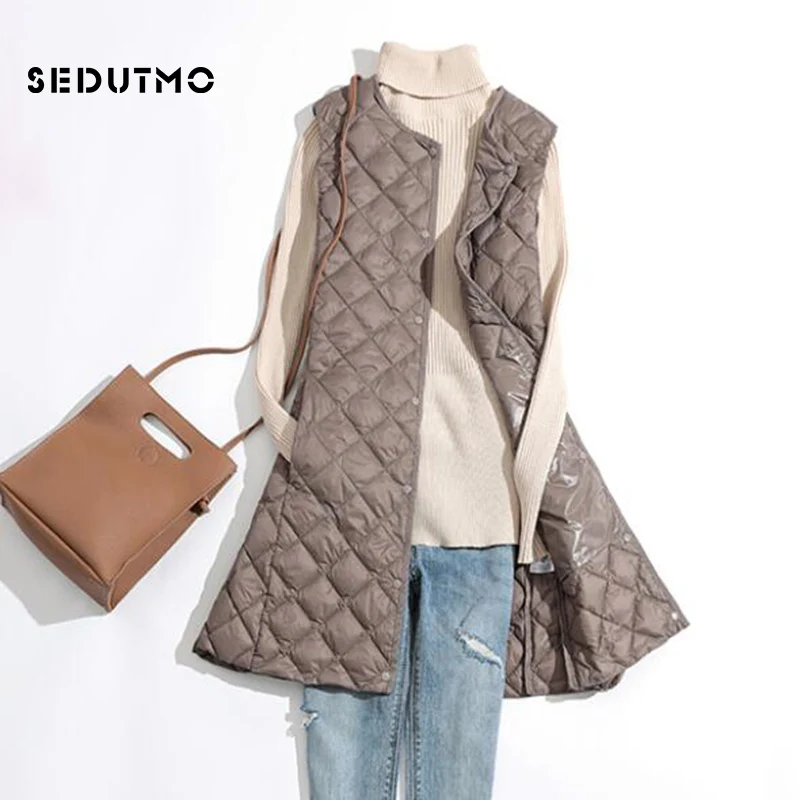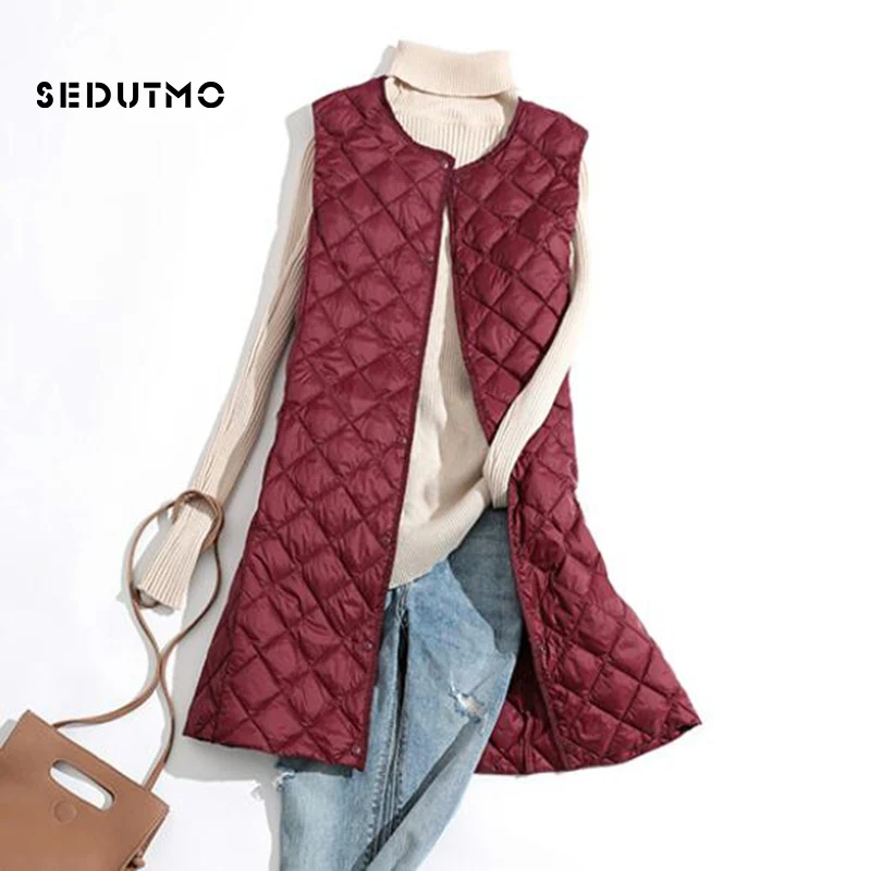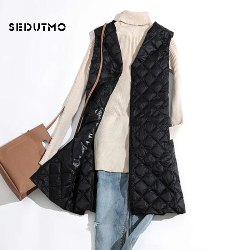 Зимний женский длинный пуховой жилет SEDUTMO размера плюс 3XL светильник кое пальто на утином пуху, осенняя пуховая куртка, жилет, облегающие парки ED614
