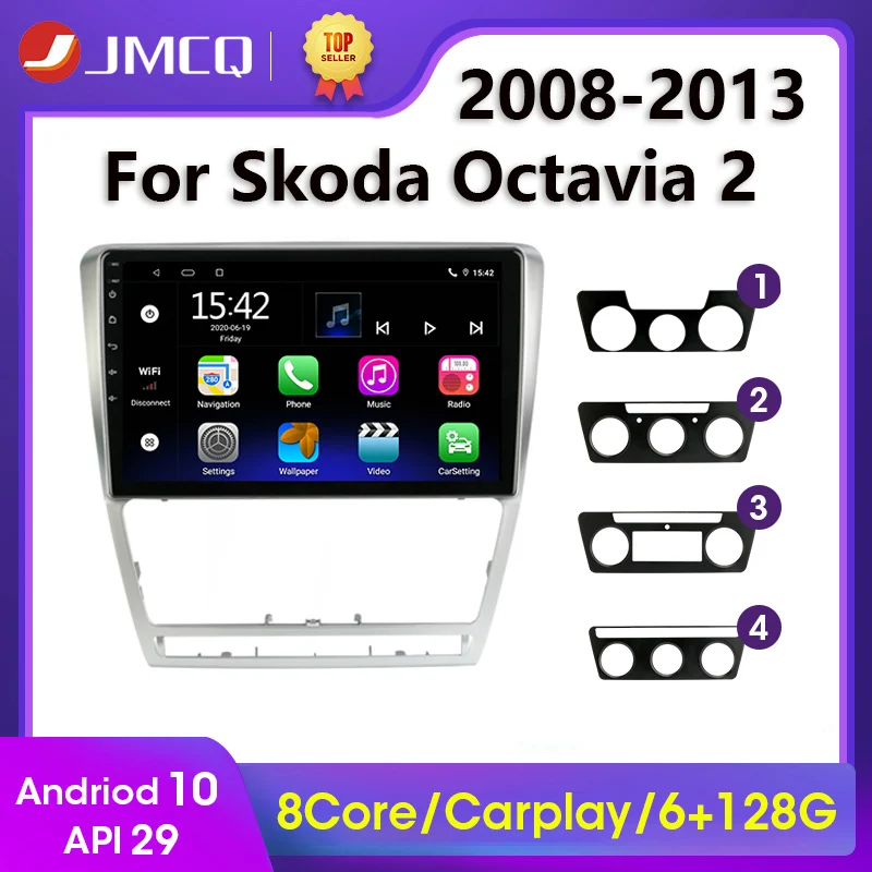 Мультимедийная магнитола JMCQ, 2 din, Android 10,0, 2 Гб + 32 ГБ, DSP, для автомобиля, мультимедийный видеоплеер, навигация GPS для SKODA Octavia 2 2008-2013 A5, dvd