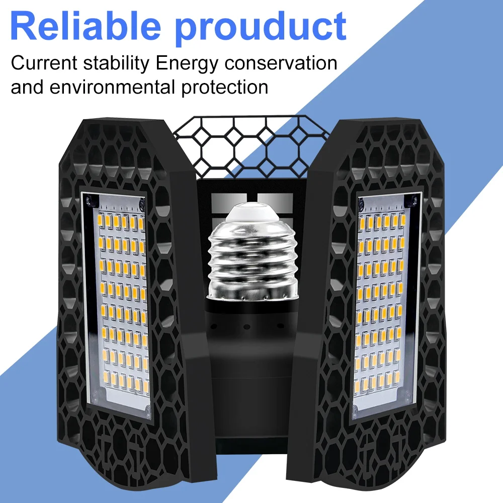 Светодиодная лампа E27 Garage Light 40W 60W 80W High Bay 220V Потолочная лампа Складная светодиодная ампула для мастерской Склад Деформируемая вентиляторная лампа