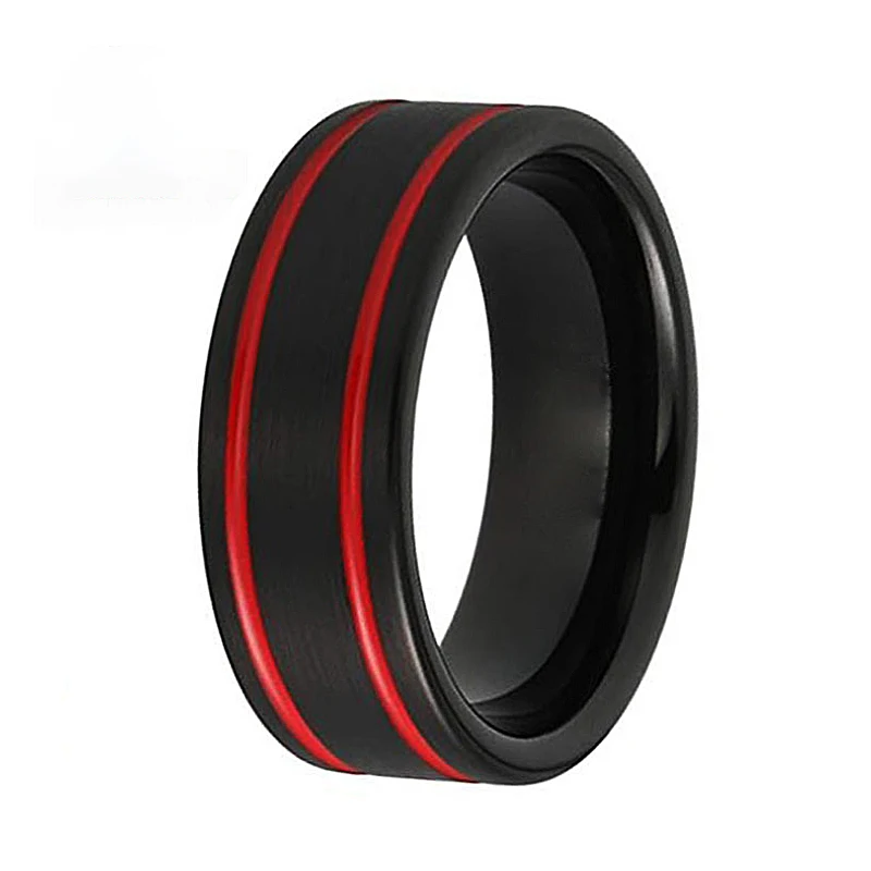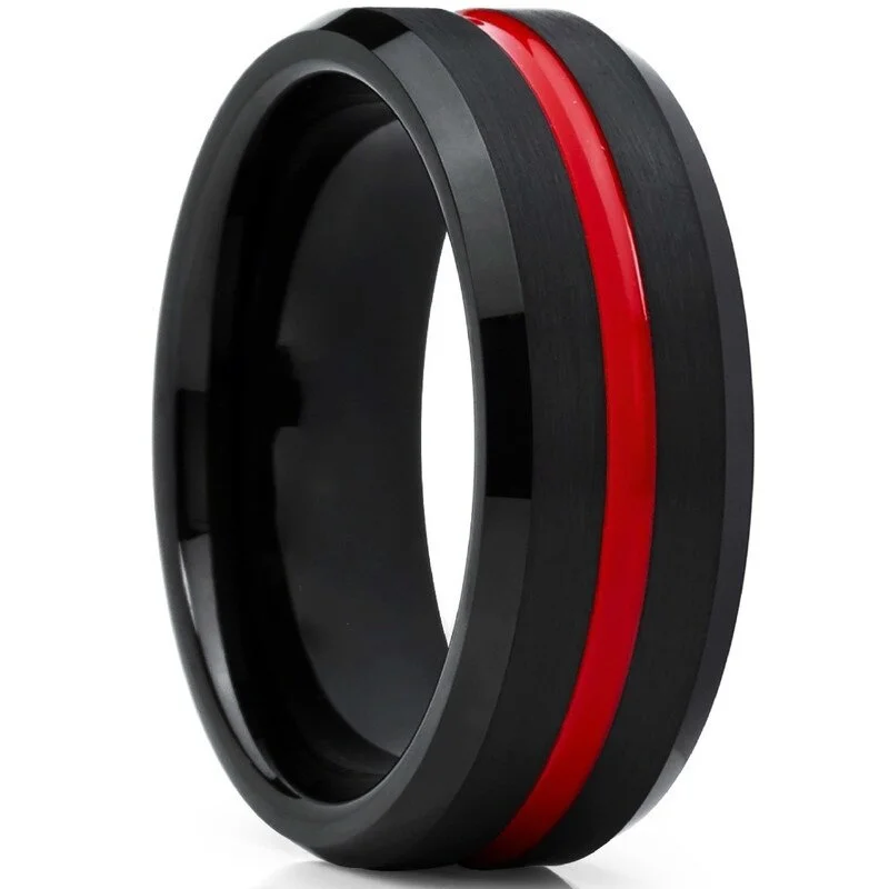 Мужское кольцо из титановой стали, черное кольцо с красной линией