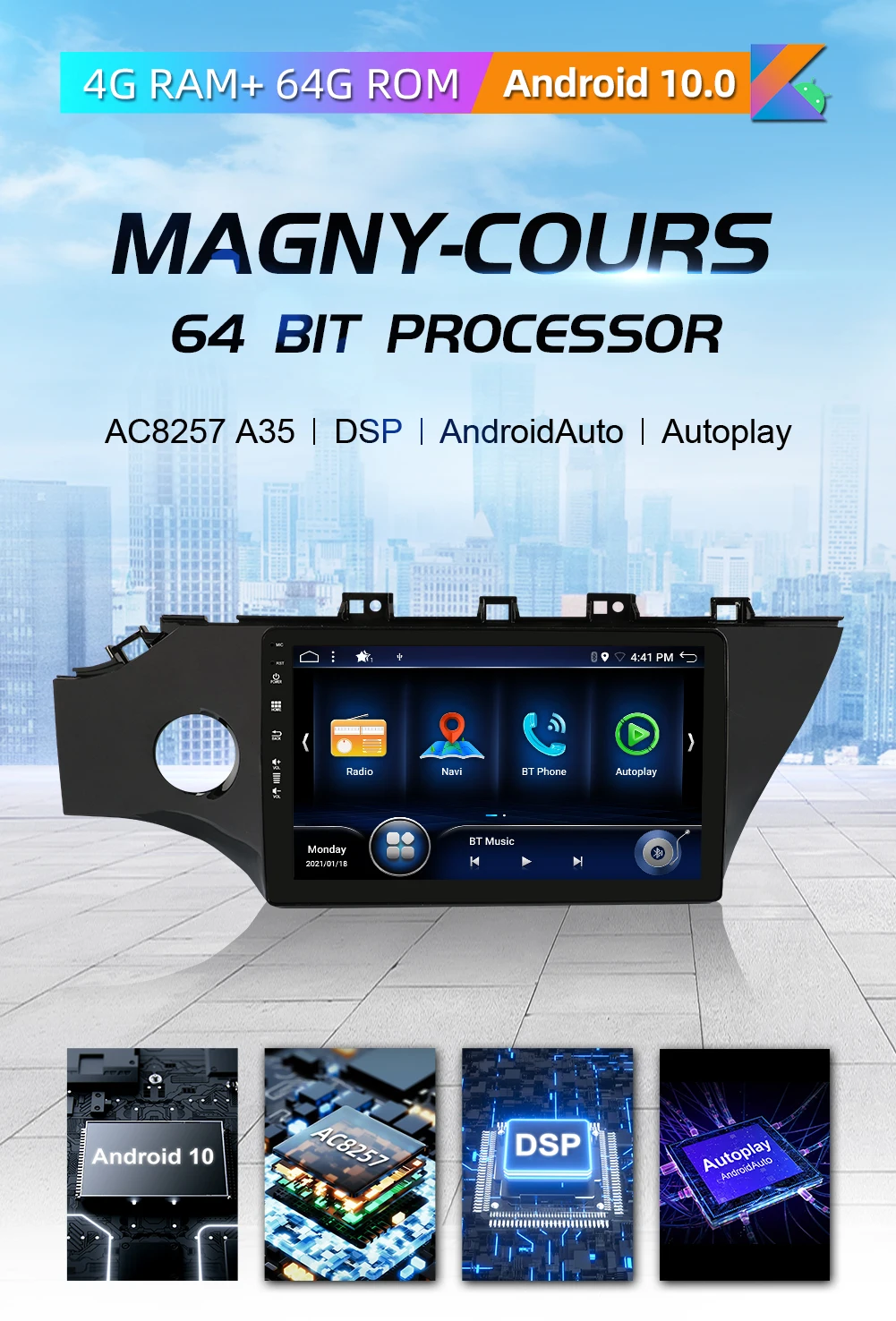 10 дюймов Android 10,0 + емкостный Экран + 1024*600 + AC8257 Octa Core A53 2,5 ГГц Процессор + DDR4 4 Гб Оперативная память + 64 Гб Встроенная память памяти, встраиваемая мультимедийная карта памяти GPU:IMG GE8300Выходная мощность: 4*45 ВтBluetooth 5,0, радио IC TDA 7708. Усилитель 7851Рабочая температура-20 ℃-+ 70 ℃Видео: поддержка 1080P,AUX IN, RCA выход