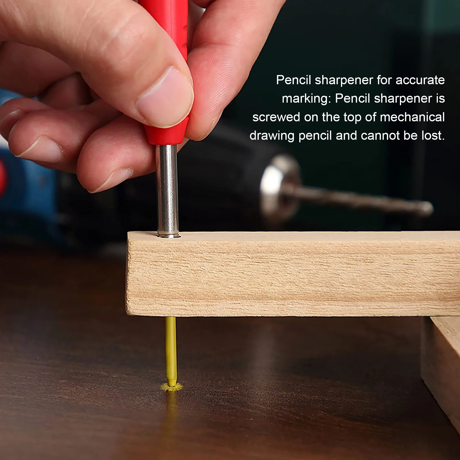 2. Точилка для точной маркировки: точилка вкручивается в верхнюю часть механического карандаша для рисования, и она не будет потеряна, и ваш механический карандаш всегда будет заточен для хорошей точности