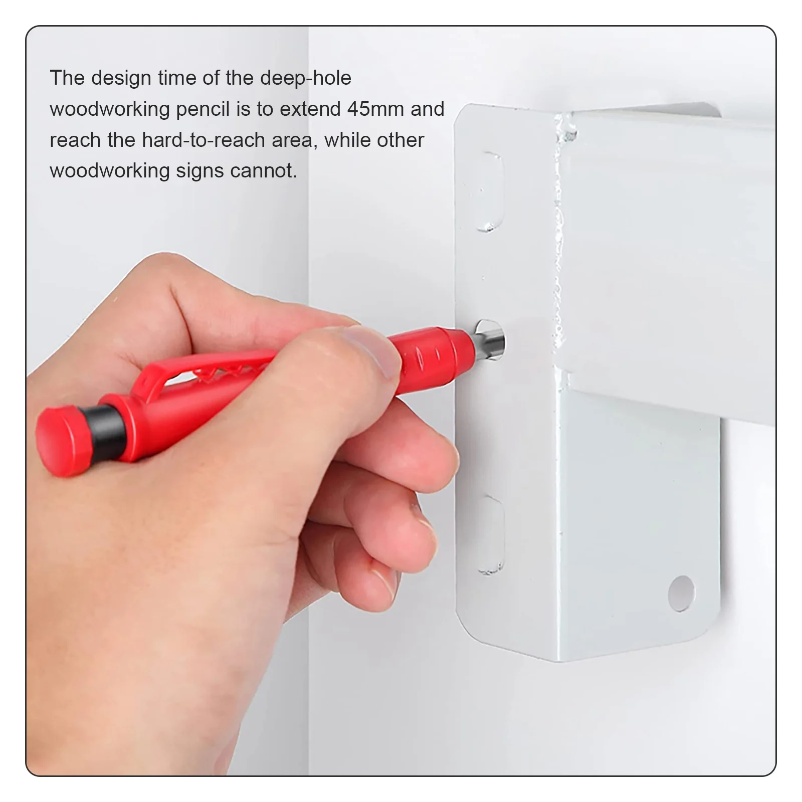 1. Производитель глубоких отверстий: время проектирования карандаша плотника с глубоким отверстием составляет 45 мм и наконечник носа иглы, достигая труднодоступных мест, в то время как другие знаки плотника не могут. Подходит для сквозных отверстий или других узких зон.