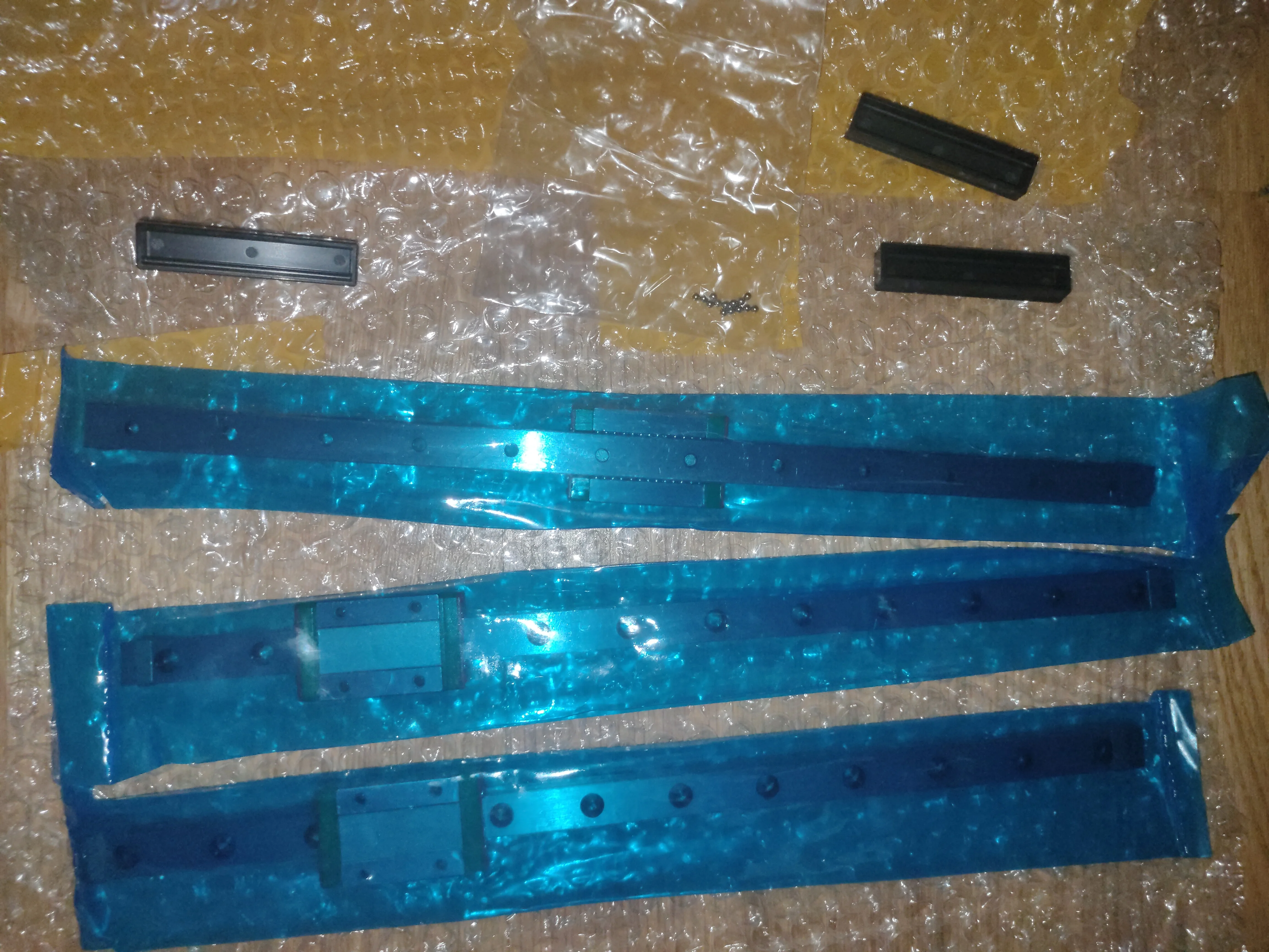 Пришло быстро. Каждое изделие упаковано в отдельную тубу из твёрдого картона. Вместе с рельсом и кареткой приложена пластмассовая заглушка для съёма каретки и несколько запасных шариков. Каретки на рельсе на болтаются.