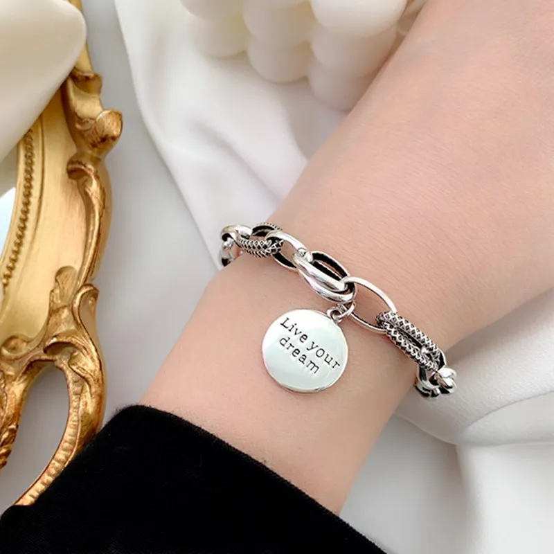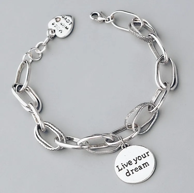 YIZIZAI модный браслет в форме сердца с круглыми буквами алфавита посеребренный браслет для женщин милый браслет с надписью Live Your Dream ювелирные изделия