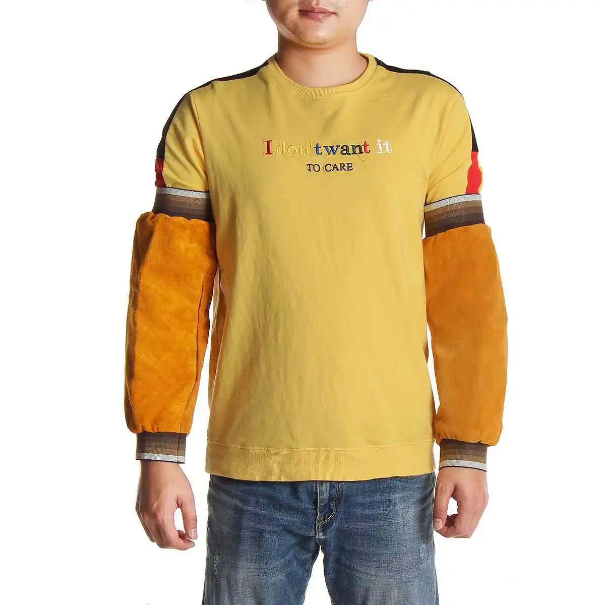 Сварочный фартук, защитный комплект для сварки, мужской, женский, мужской, кожаный защитный, рабочий, желтый, термостойкий фартук, перчатки