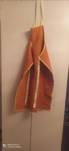 Фартук из искусственной замши, типа сварочных краг. Брал для возни в гараже, иногда приходится варить. Что бы не палить зря х.б. накинул поверх и посверкал, удобно. Завязки из синтетической ткани, наверно будут развязываться. Если что, поменяю.