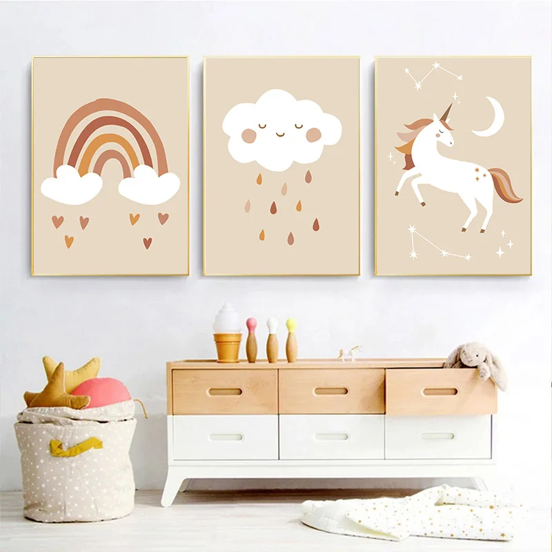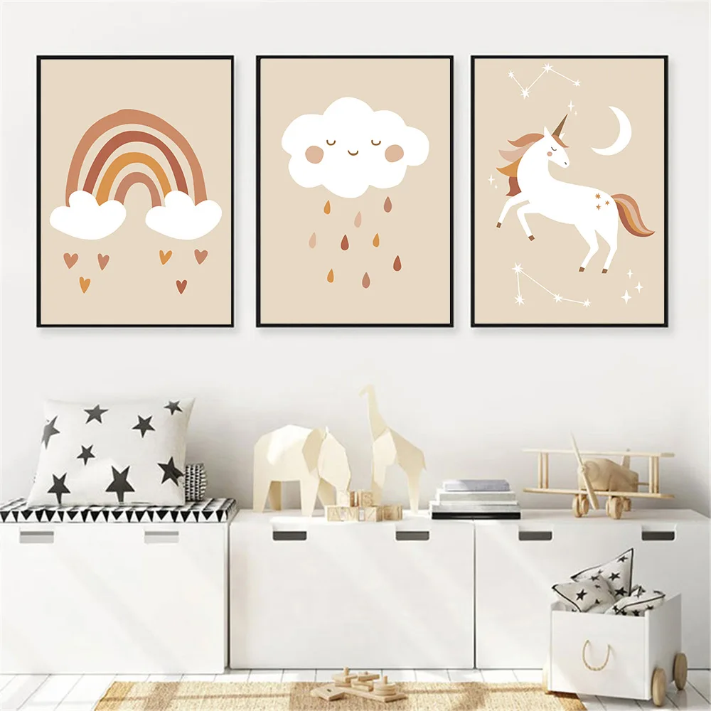 Абстрактная Радуга настенный постер единорог животные Художественная печать облако сердце капли воды холст картины для декорирования детской комнаты