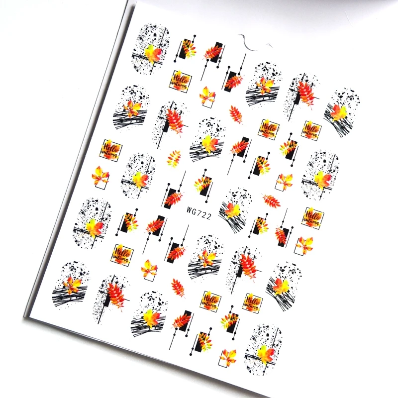 1 шт. осенние наклейки для ногтей кленовый лист осенний кленовый лист наклейки для ногтевого дизайна 3D Золотой осенний дизайн лак наклейки линия клейкие слайдеры