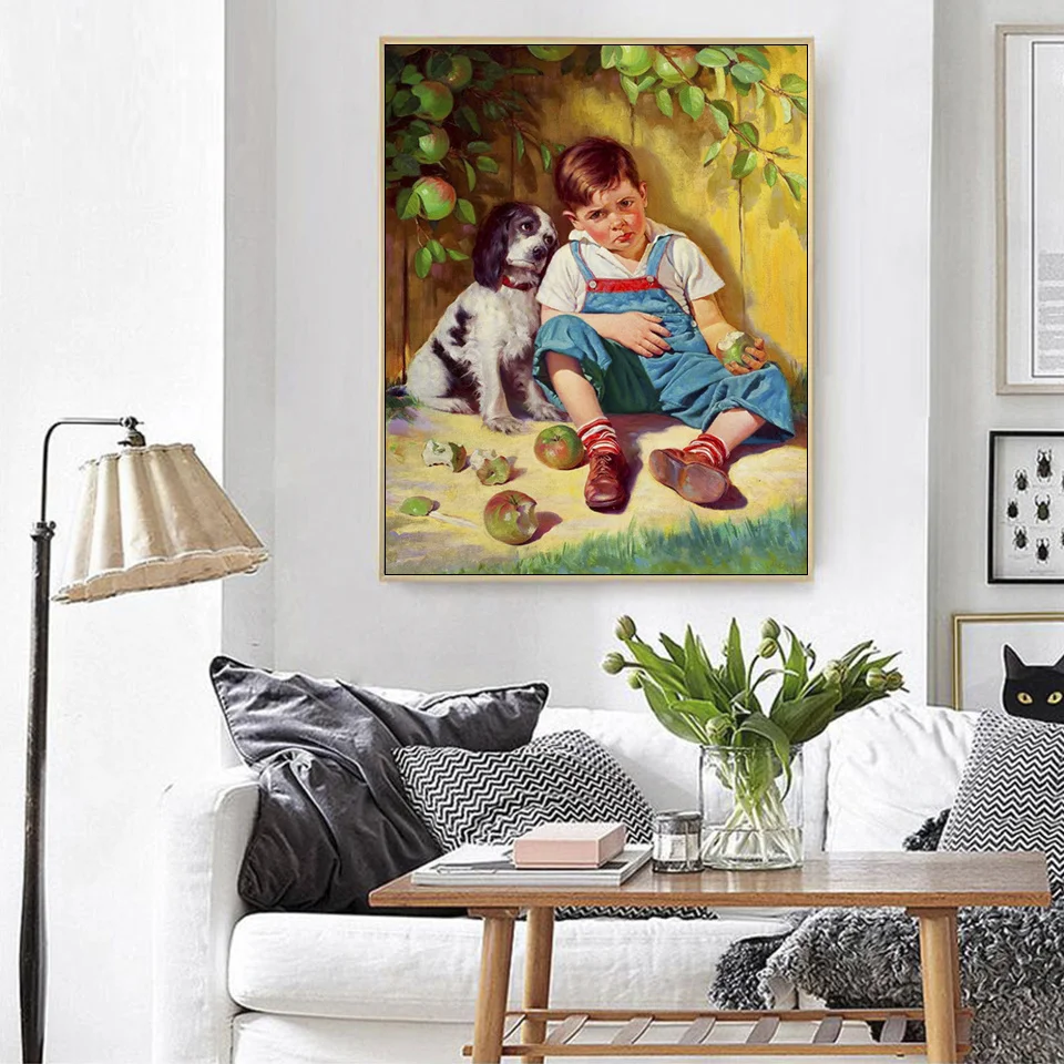 Алмазная мозаика, полный макет:Мальчик с алмазной вышивкой