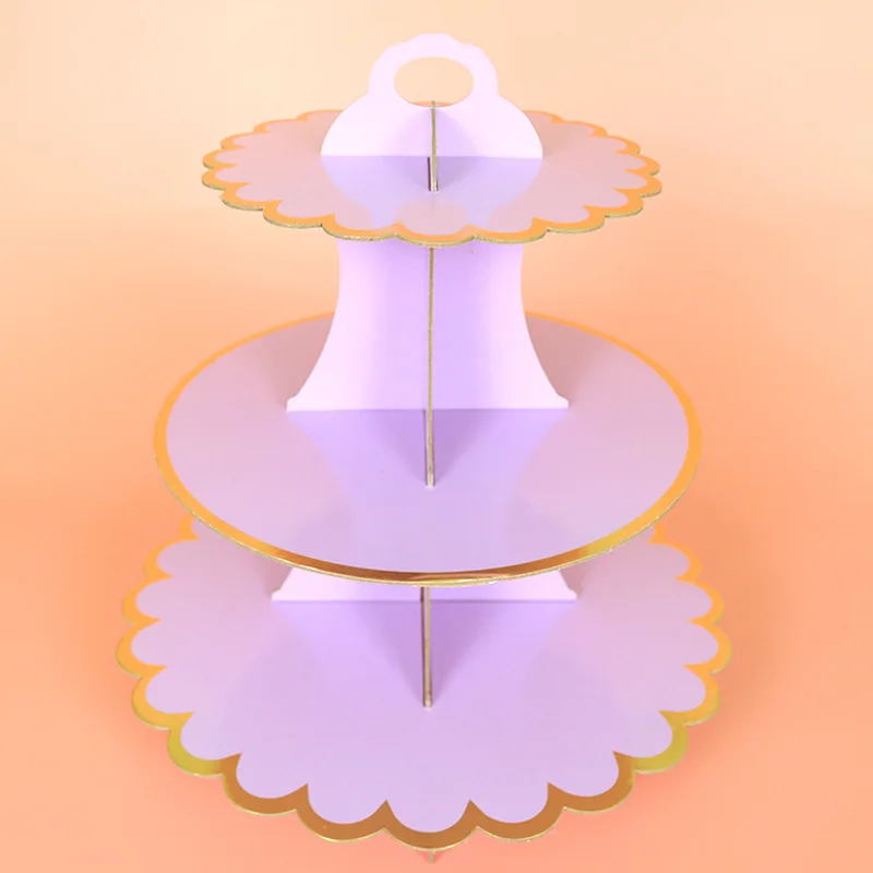 3-уровневая круглая картонная подставка для кексов, розового, золот...