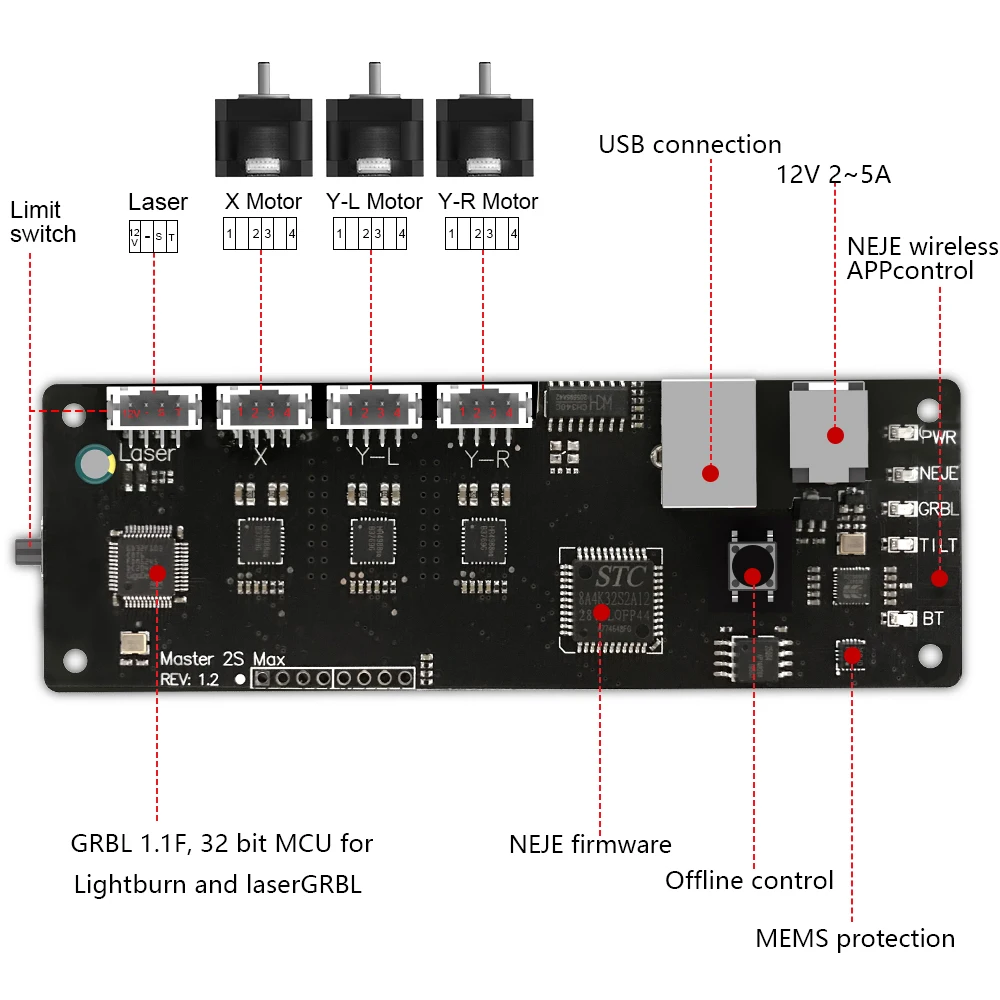 Примечание: Температурный интерфейс может быть отключен, NEJE предоставляет текстовые инструкции по приобретению температуры на wiki.