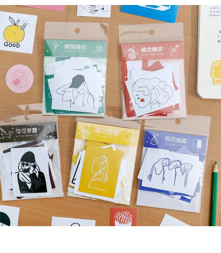 40 наклеек, простые креативные наклейки с иллюстрациями, декоративные наклейки для скрапбукинга, наклейки, хлопья, школьные принадлежности