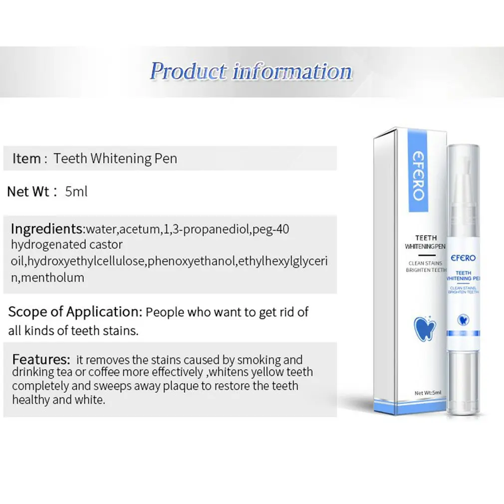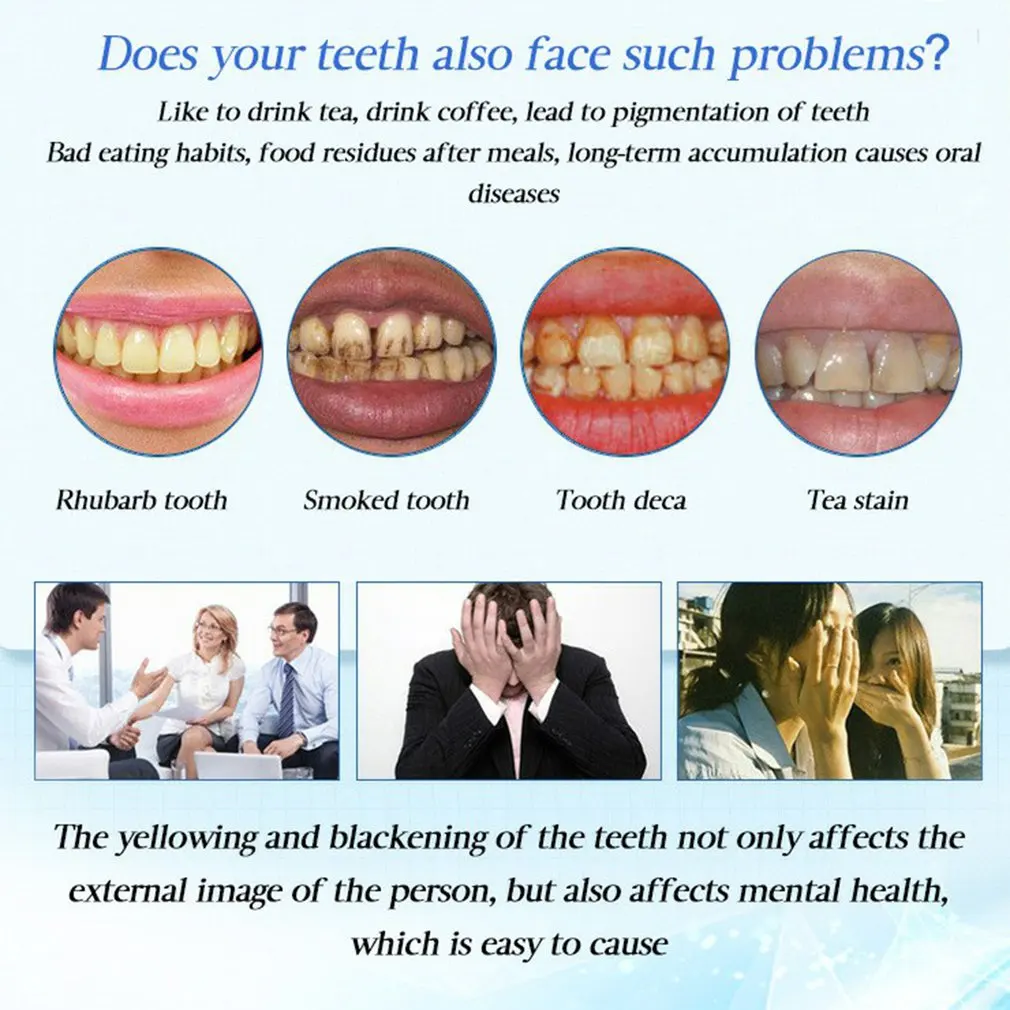 Описание:Подходит для всех видов неурядиц, таких как пятна дыма, пятна чая, кофе, кола, красное вино, цветная еда, вредные привычки и другие причины, вызванные желтыми зубами, черными зубами.