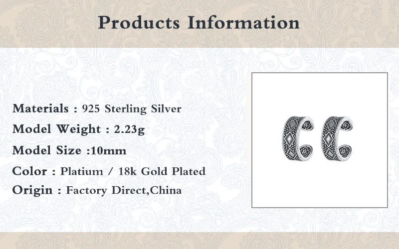 Серьги-каффы женские из серебра 925 пробы, без пирсинга, 2 шт.