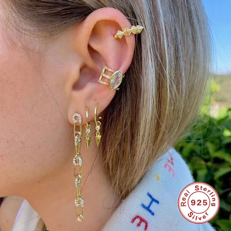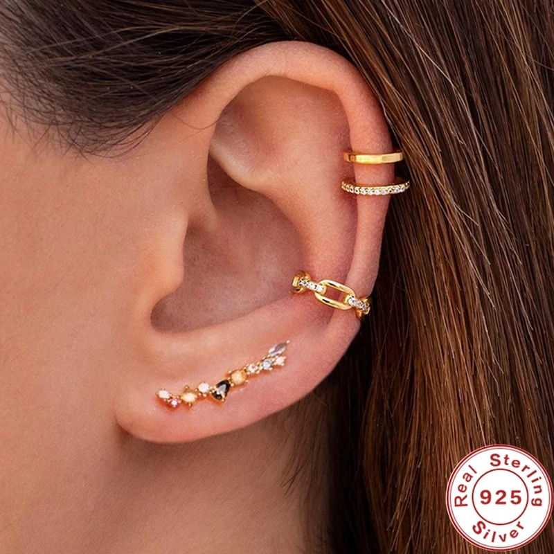 Женские серьги-манжеты без пирсинга, 2 шт., из стерлингового серебра 925 пробы, регулируемые украшения без пирсинга