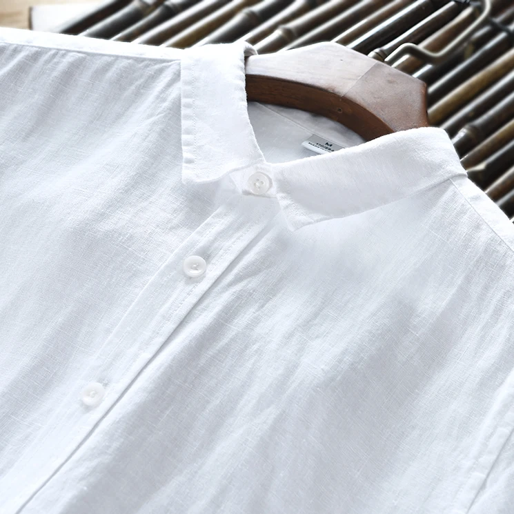 Мужская рубашка с длинными рукавами, из 100% чистого льна, Мужская брендовая рубашка, однотонная белая рубашка, S-3XL, 5 видов цветов